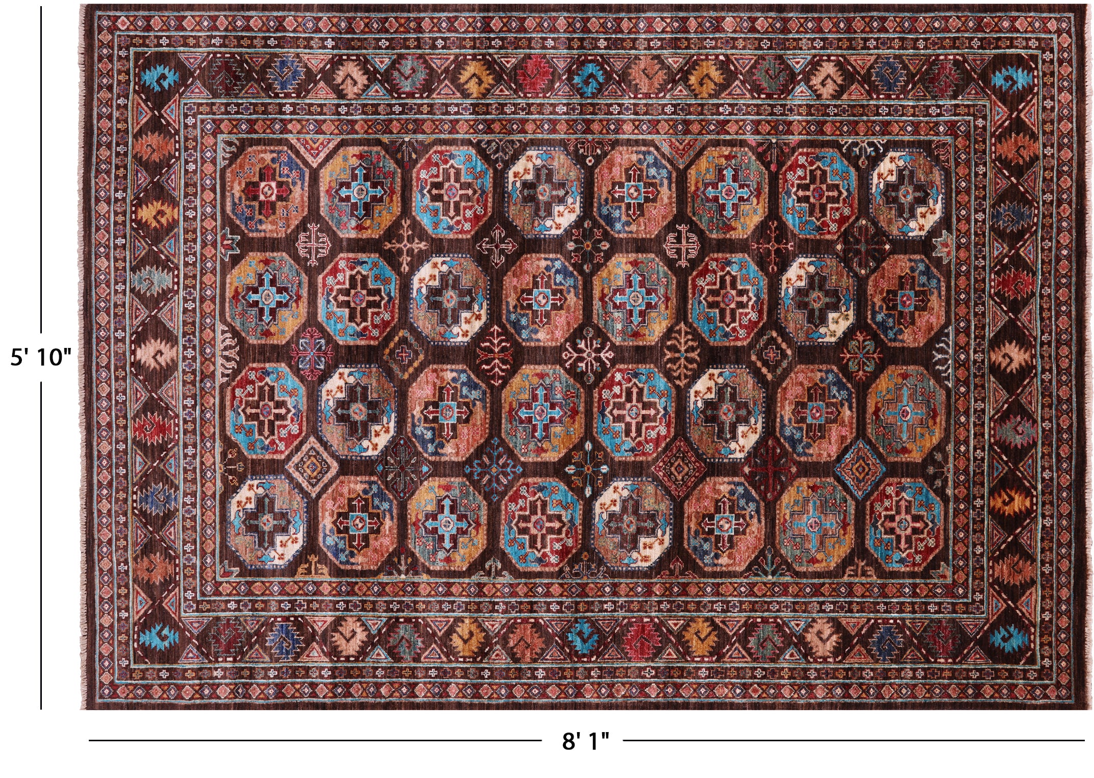 Brown Super Turkmen Ersari Hand Knotted Wool Rug 5' 10" X 8' 1" - Q17009