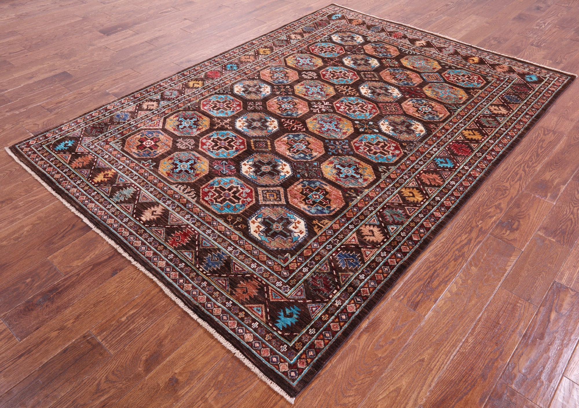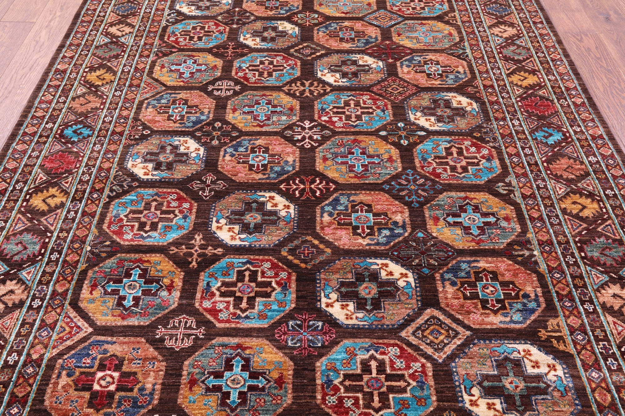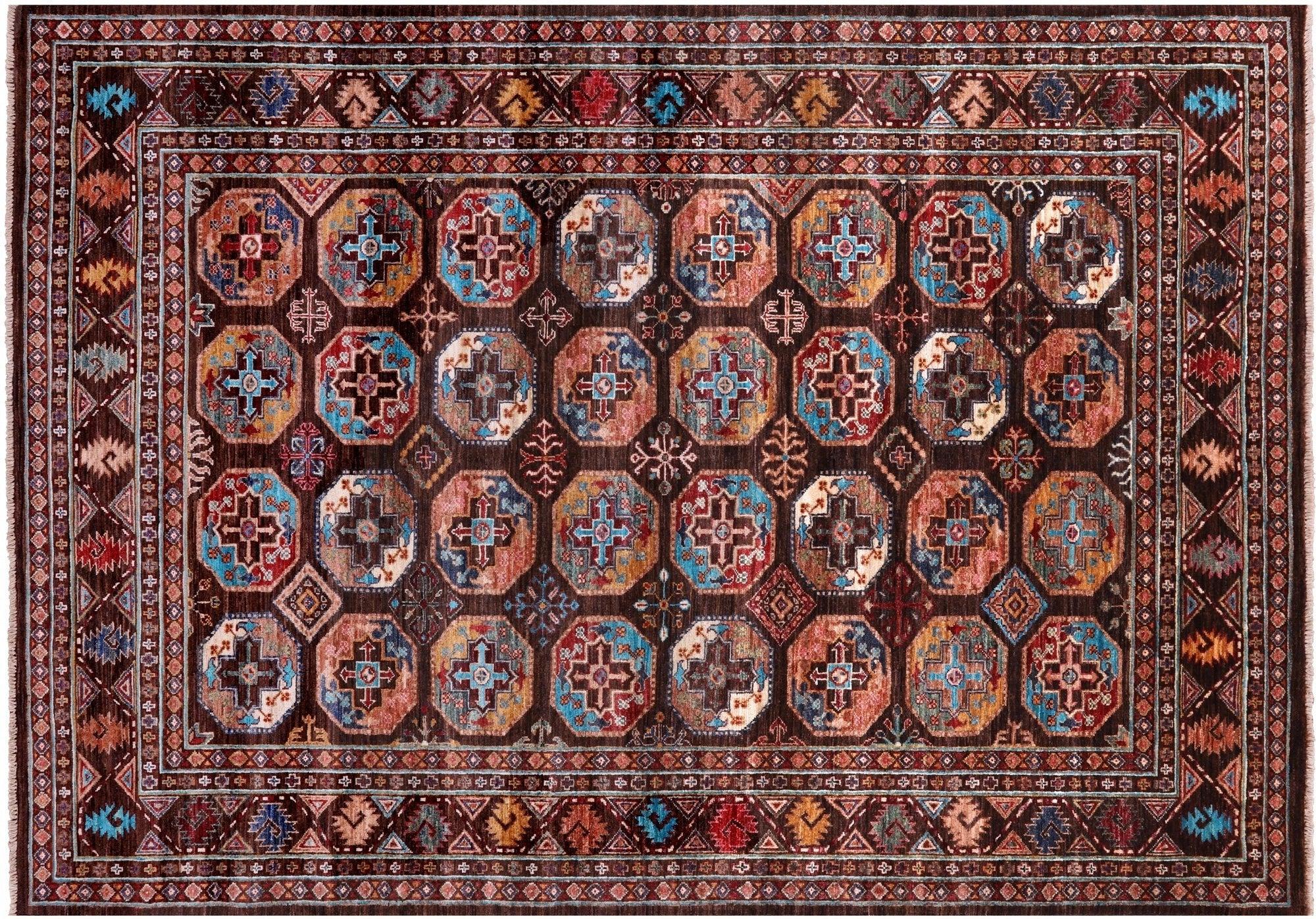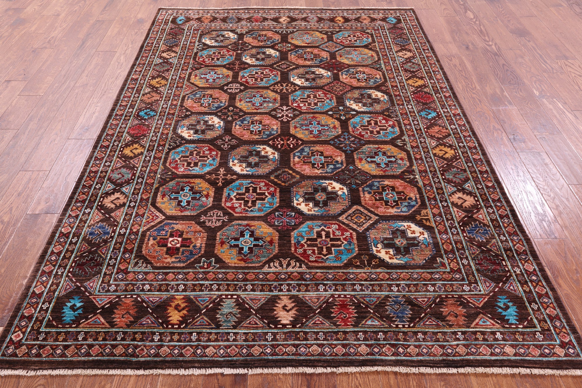 Brown Super Turkmen Ersari Hand Knotted Wool Rug 5' 10" X 8' 1" - Q17009 is backordered and will ship as soon as it is back in stock.