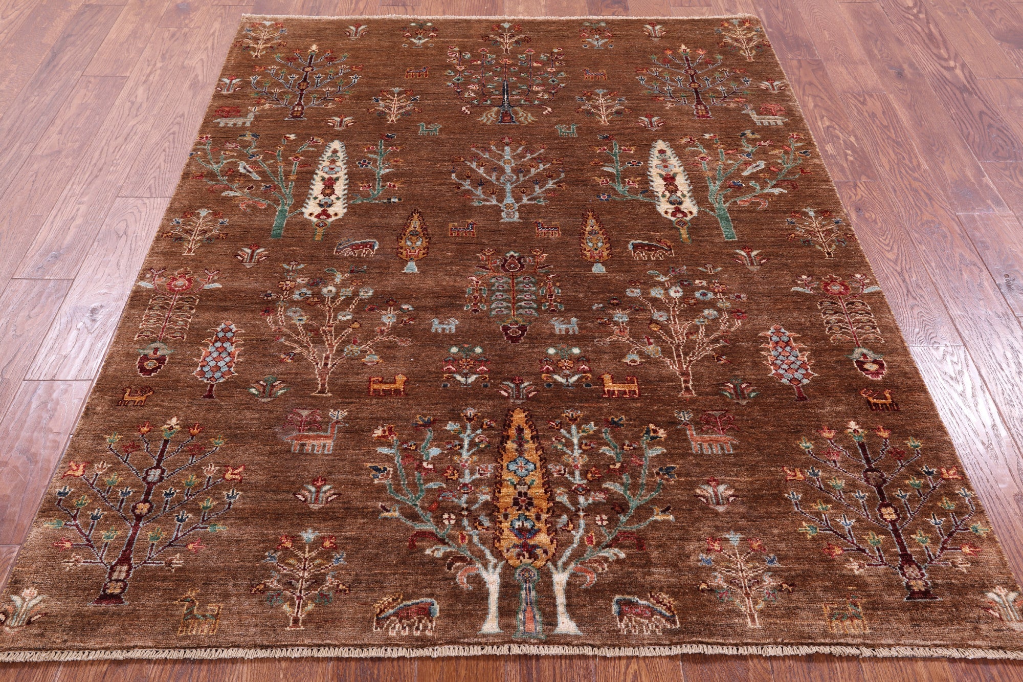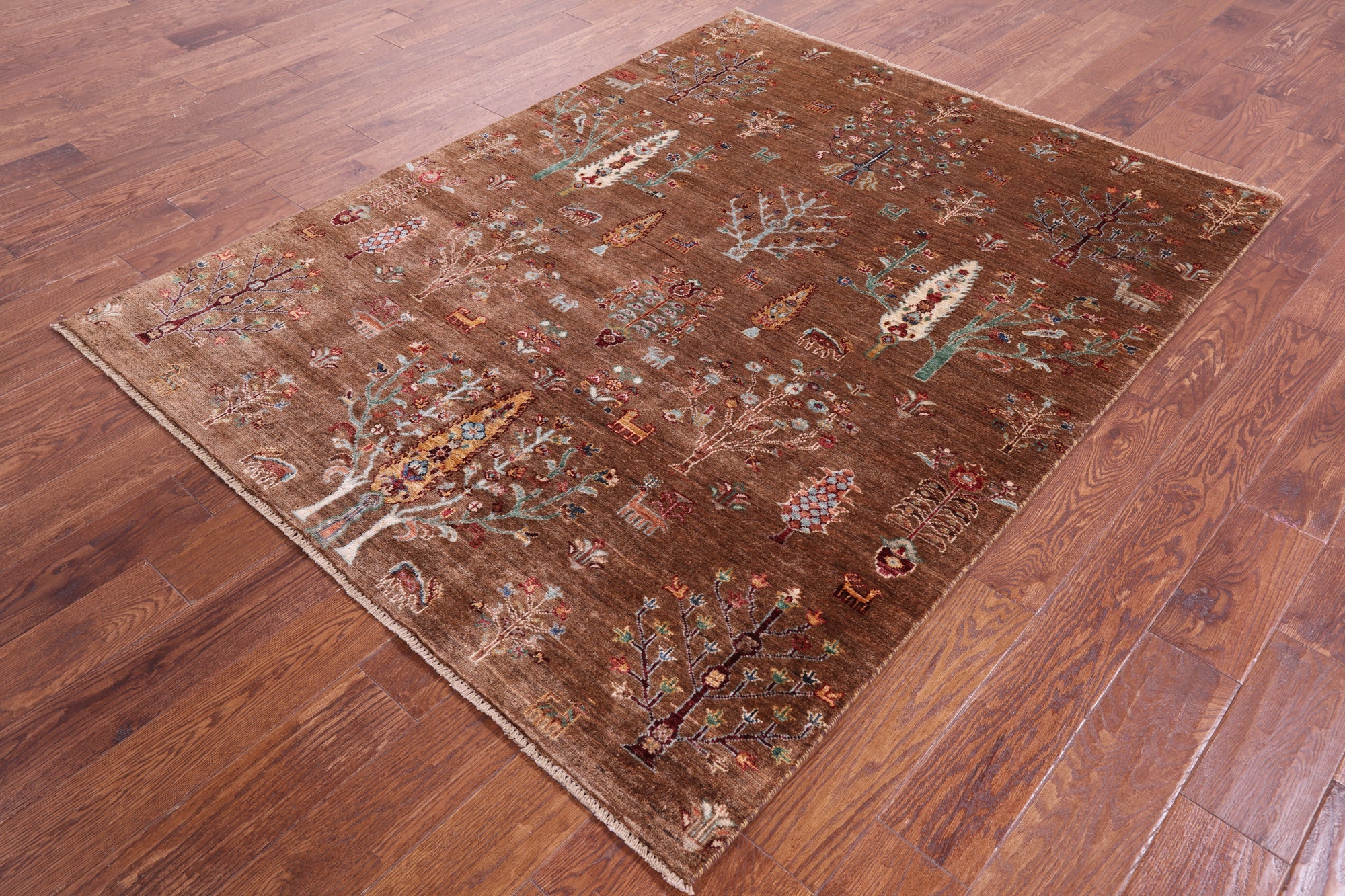 Brown 5' 1" X 6' 6" Tribal Persian Gabbeh Hand Knotted Rug - Q16510