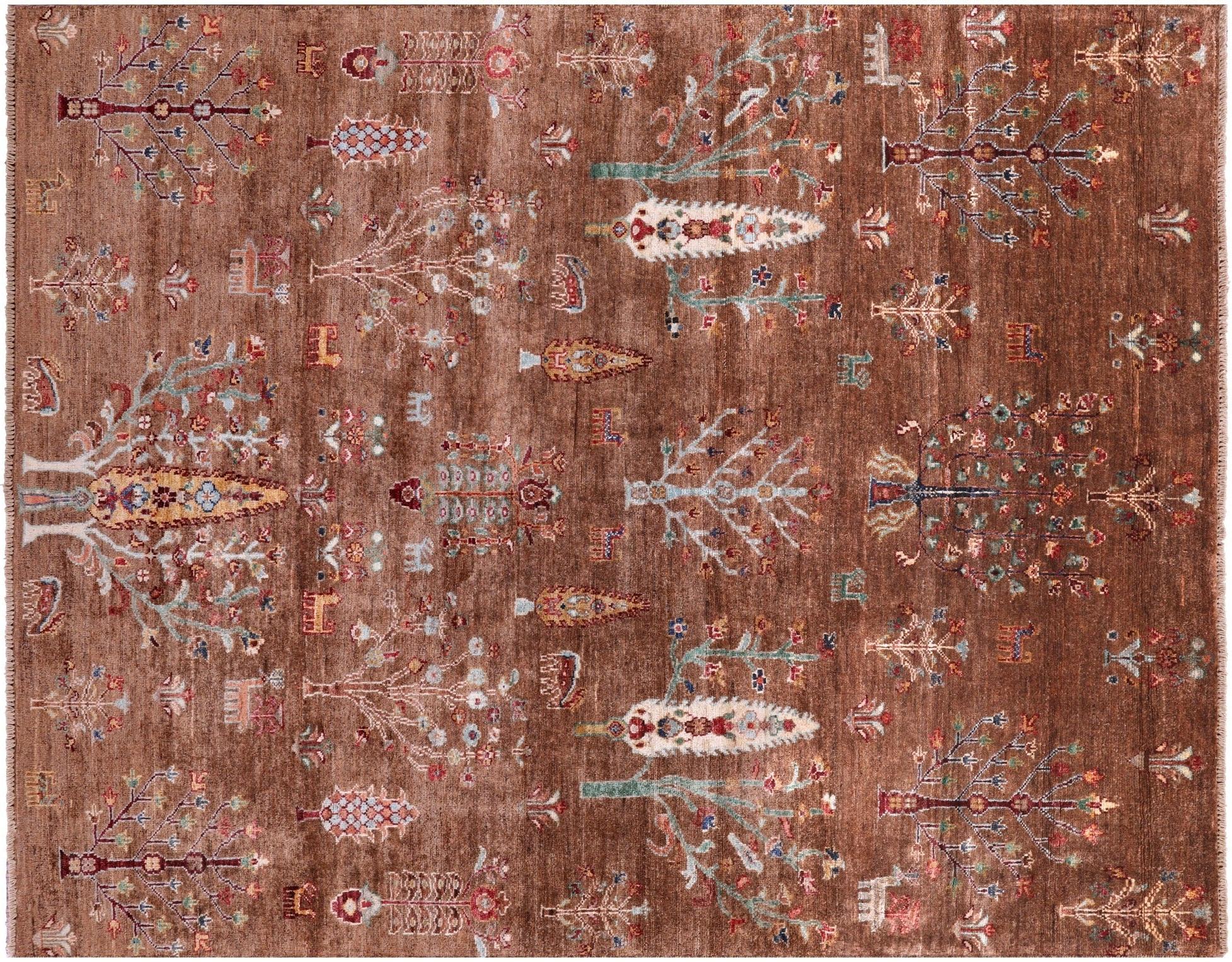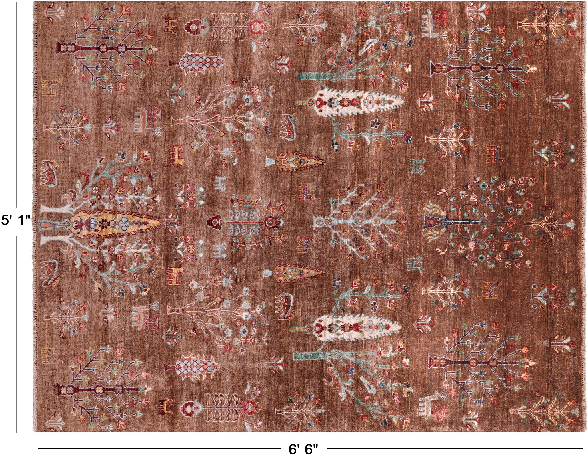 Brown 5' 1" X 6' 6" Tribal Persian Gabbeh Hand Knotted Rug - Q16510 is backordered and will ship as soon as it is back in stock.