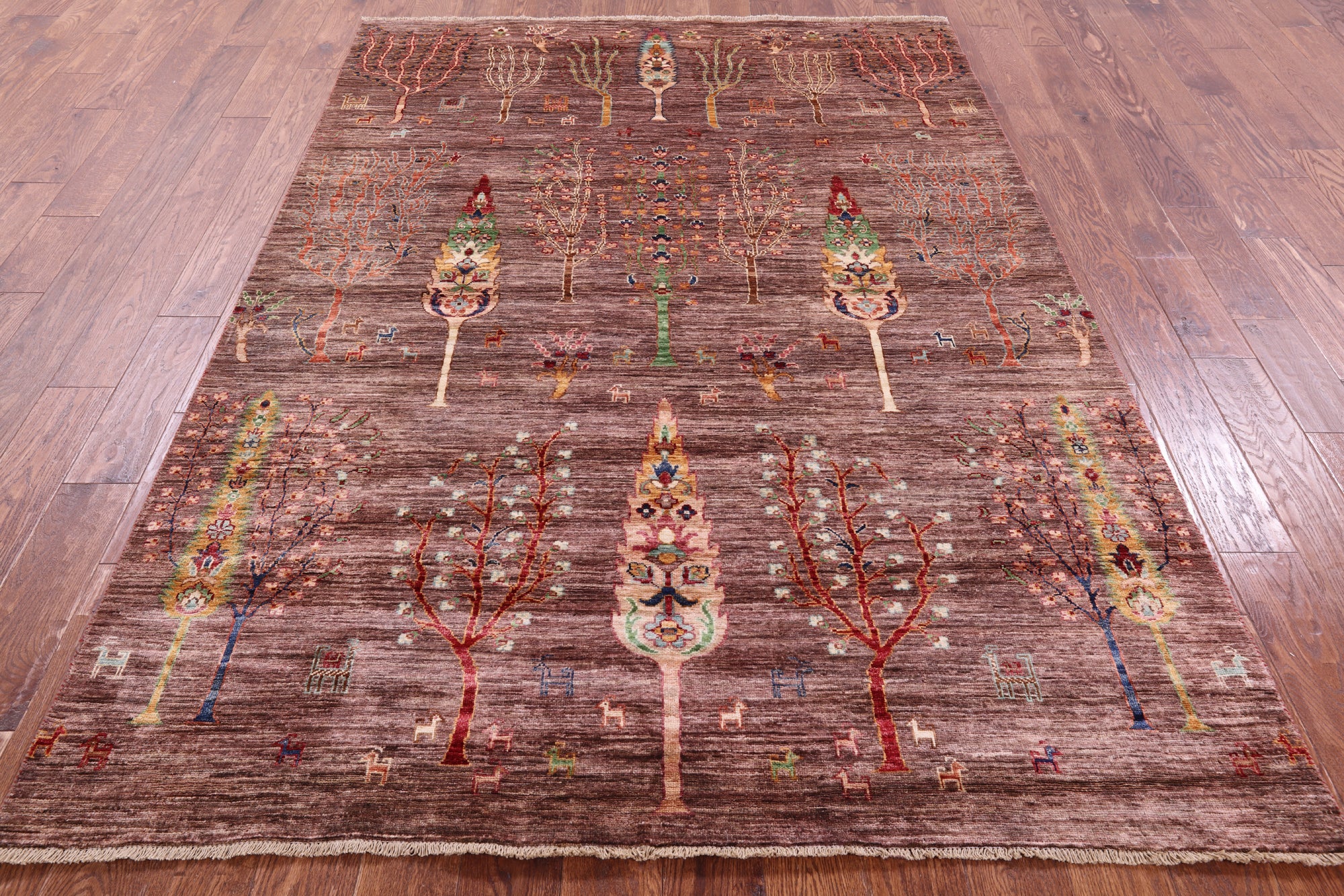 Gabbeh rugs are nothing short of simplistic and tribal, with designs consisting of primarily geometric shapes, animals, and plants. All done in a simplified way and based on the nomadic observation. Commonly brightly colored, these rugs are fun and beautiful and will add a warm touch to any home.