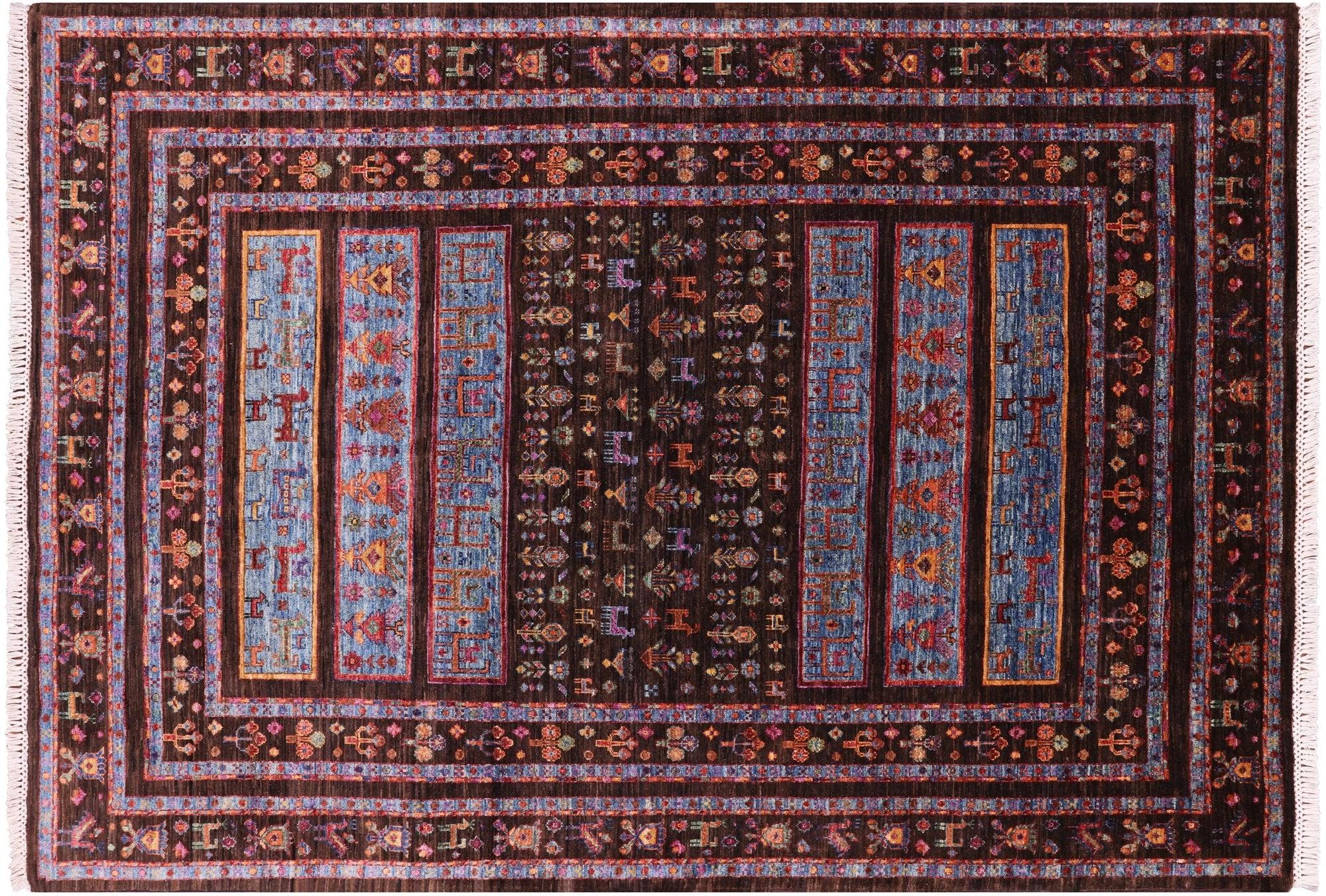 Brown 5' 8" X 7' 11" Tribal Persian Gabbeh Hand Knotted Wool Area Rug - Q3011