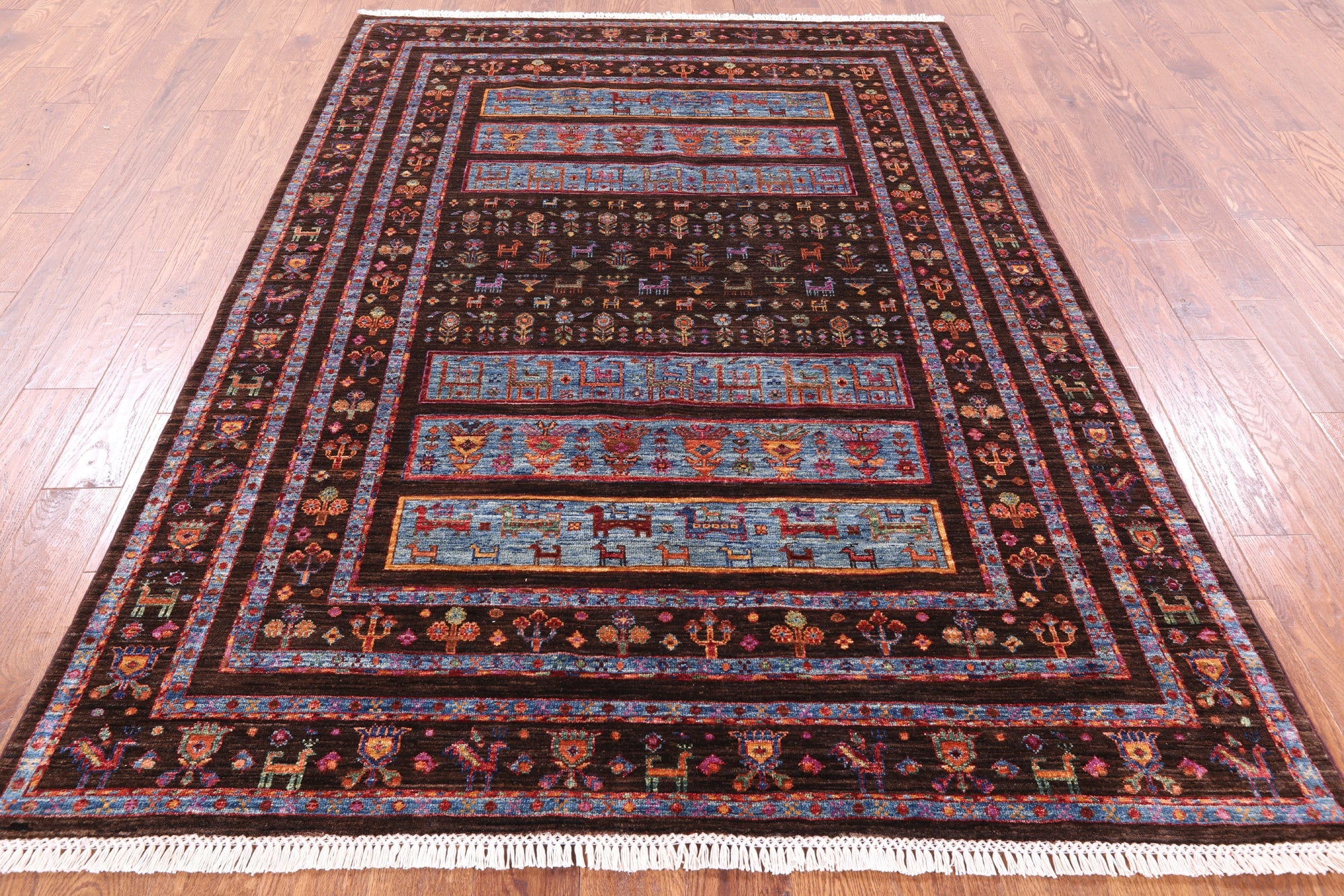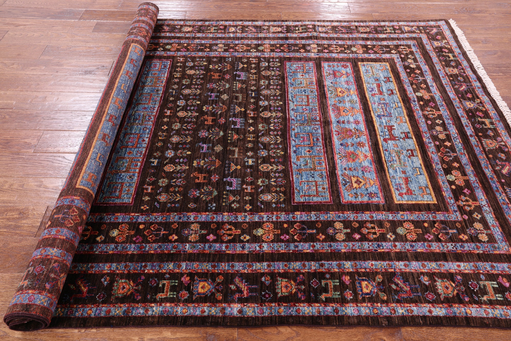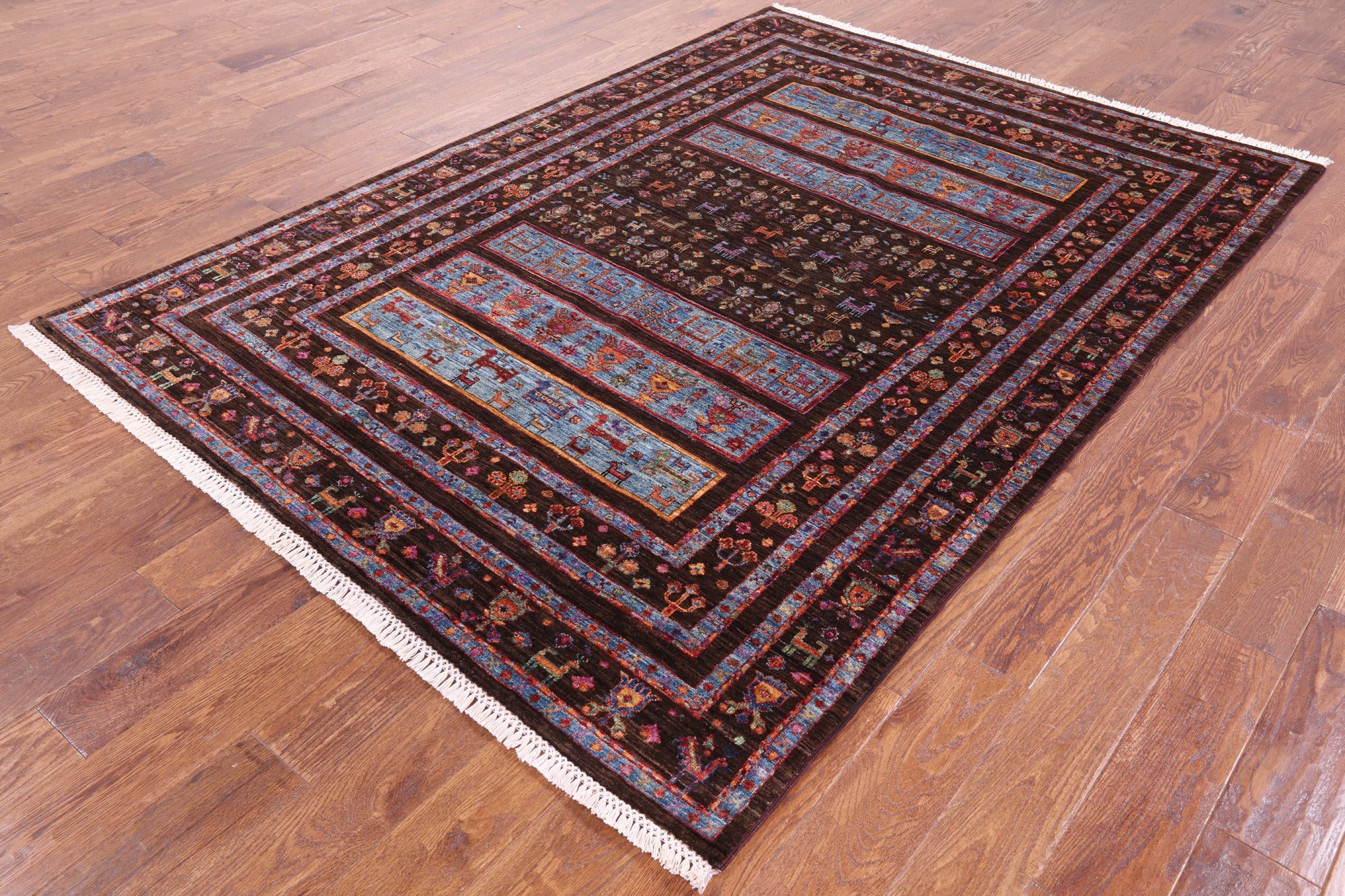 Brown 5' 8" X 7' 11" Tribal Persian Gabbeh Hand Knotted Wool Area Rug - Q3011 is backordered and will ship as soon as it is back in stock.