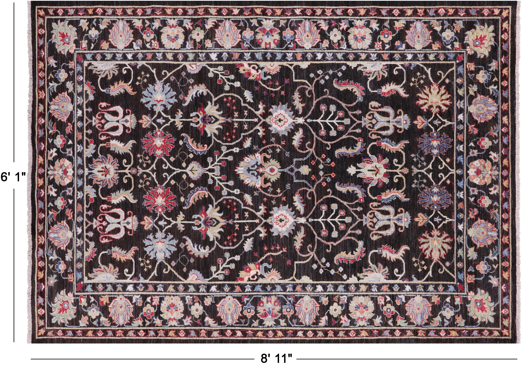 Brown Turkish Oushak Hand-Knotted Wool Rug 6' 1" X 8' 11" - Q12824