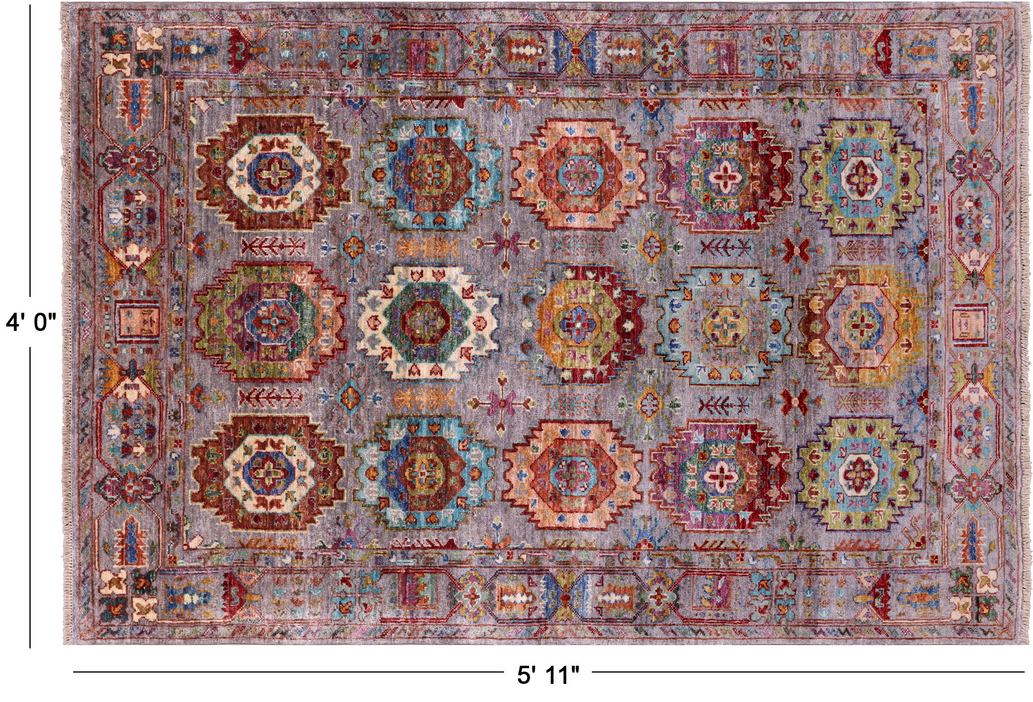 4' 0" X 5' 11" Fine Turkmen Ersari Handmade Wool Rug - Q16452