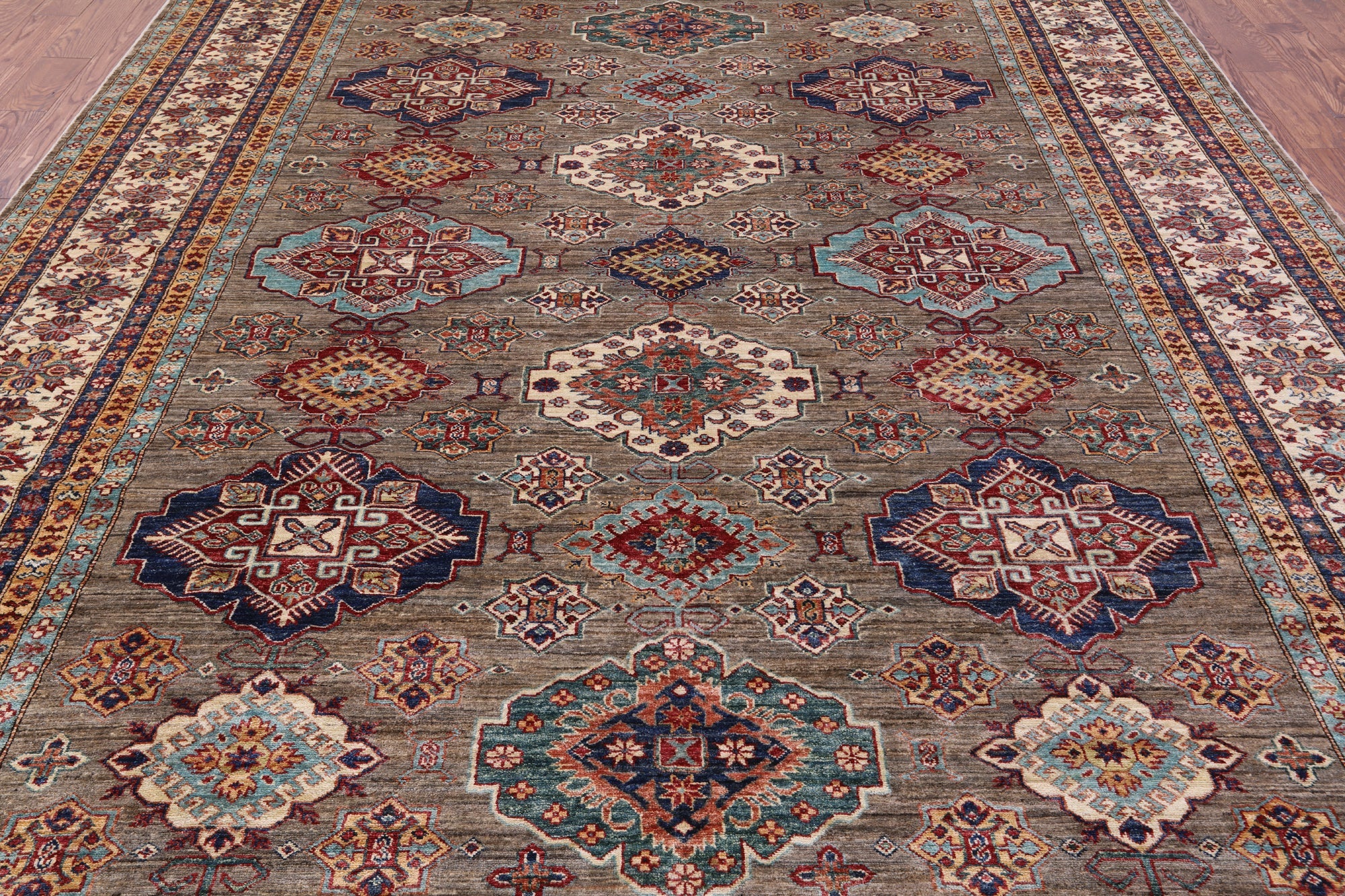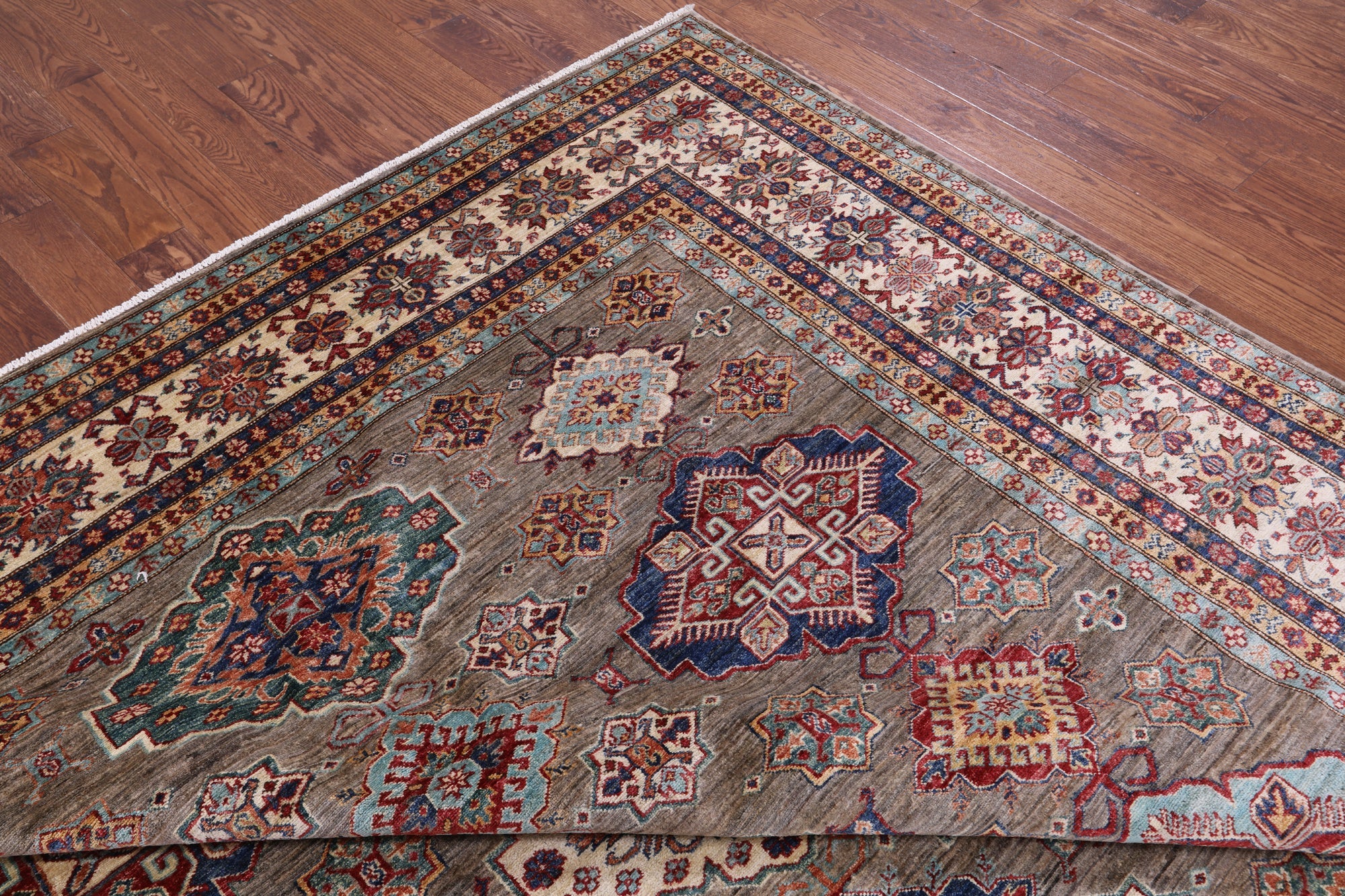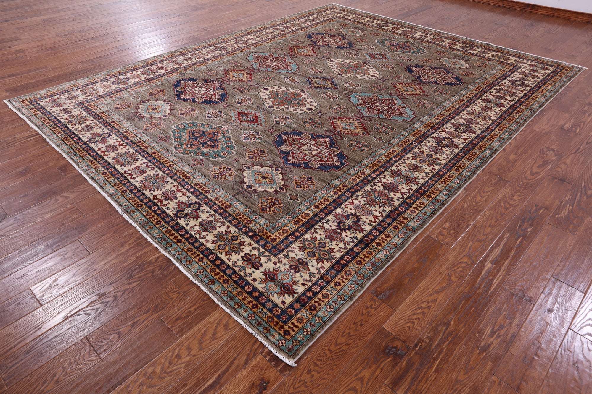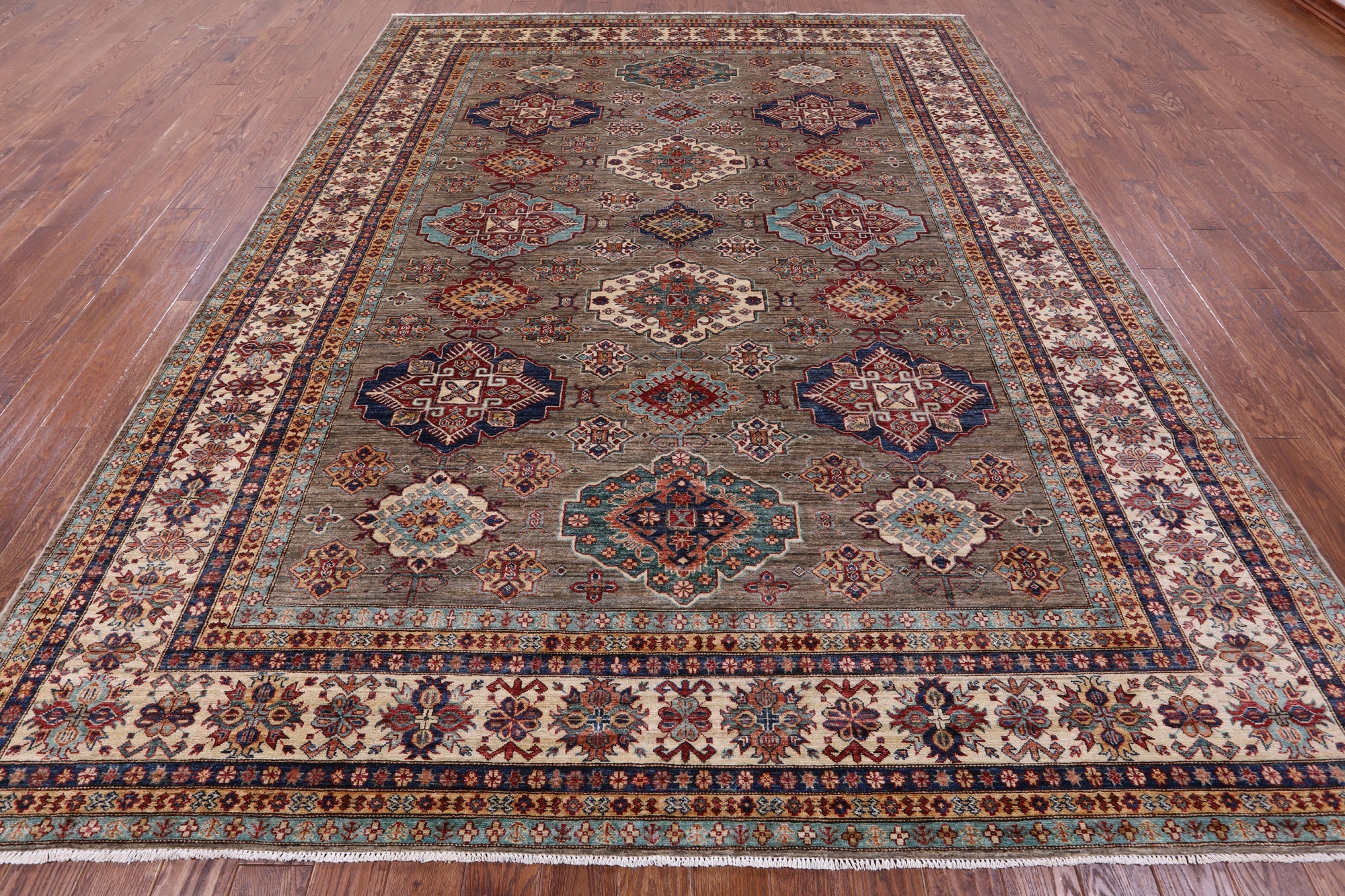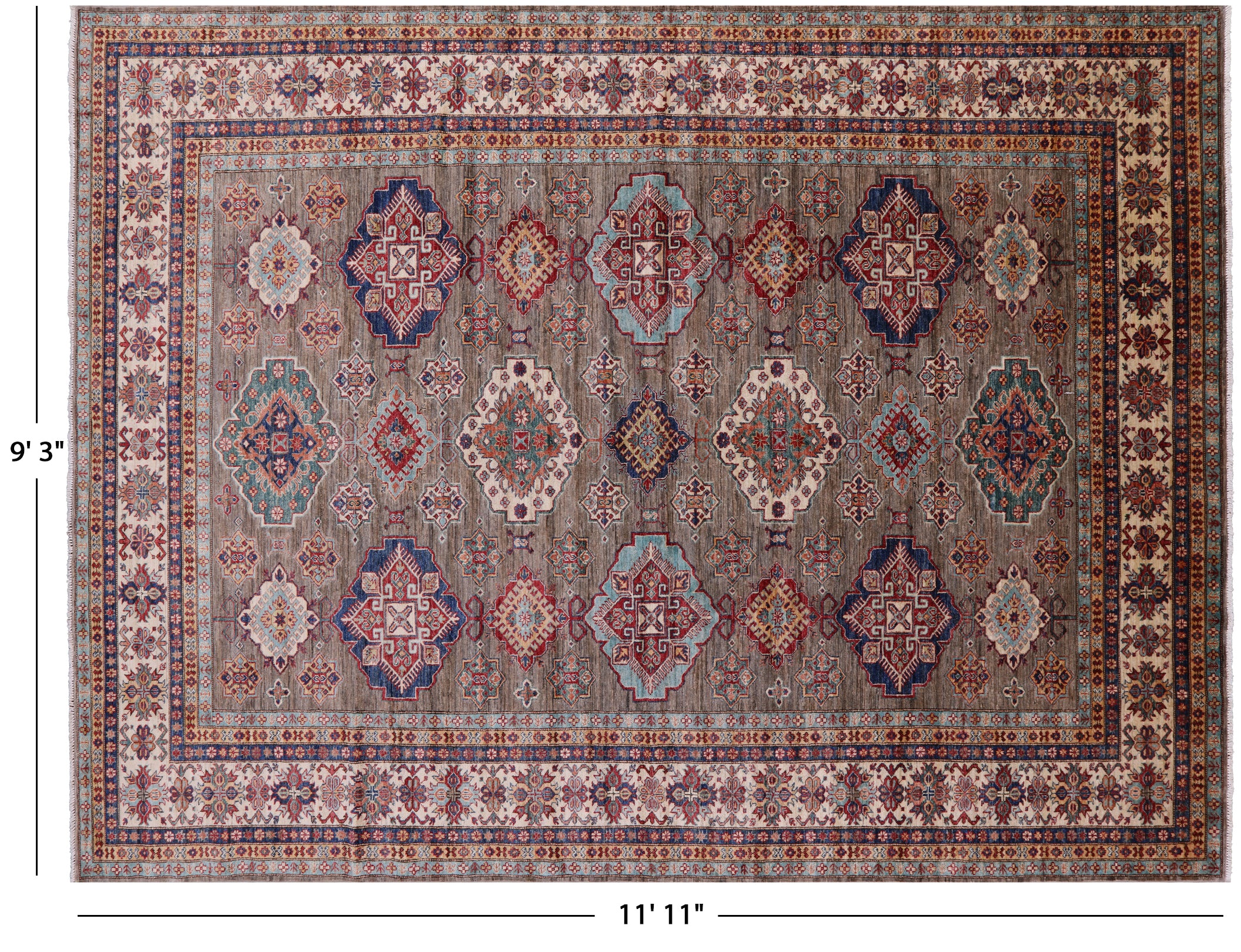 9' 3" X 11' 11" Geometric Super Kazak Handmade Wool Rug - Q14527 is backordered and will ship as soon as it is back in stock.