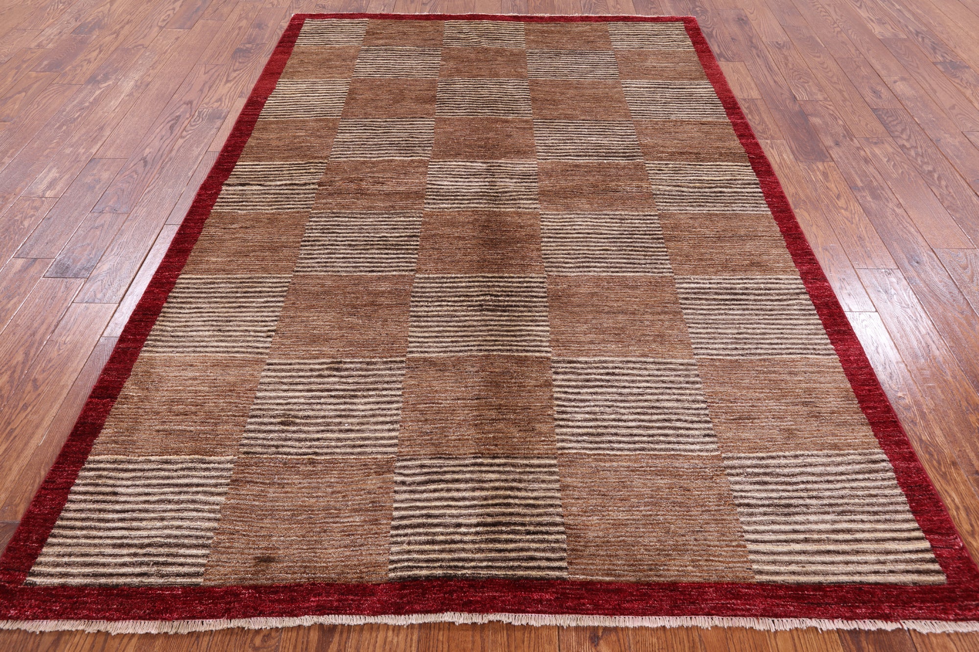 Gabbeh rugs are hand-spun wool in both the pile and the foundation, as well as all natural dyes. Simple, colorful geometric patterns, abstract scenery, child-like representations of people and animals, different colors, reds, blue, greens ,yellow, purple. Modern technology has improved the dye process to allow a wider range of colors as well as more stable and easier to care for colors.