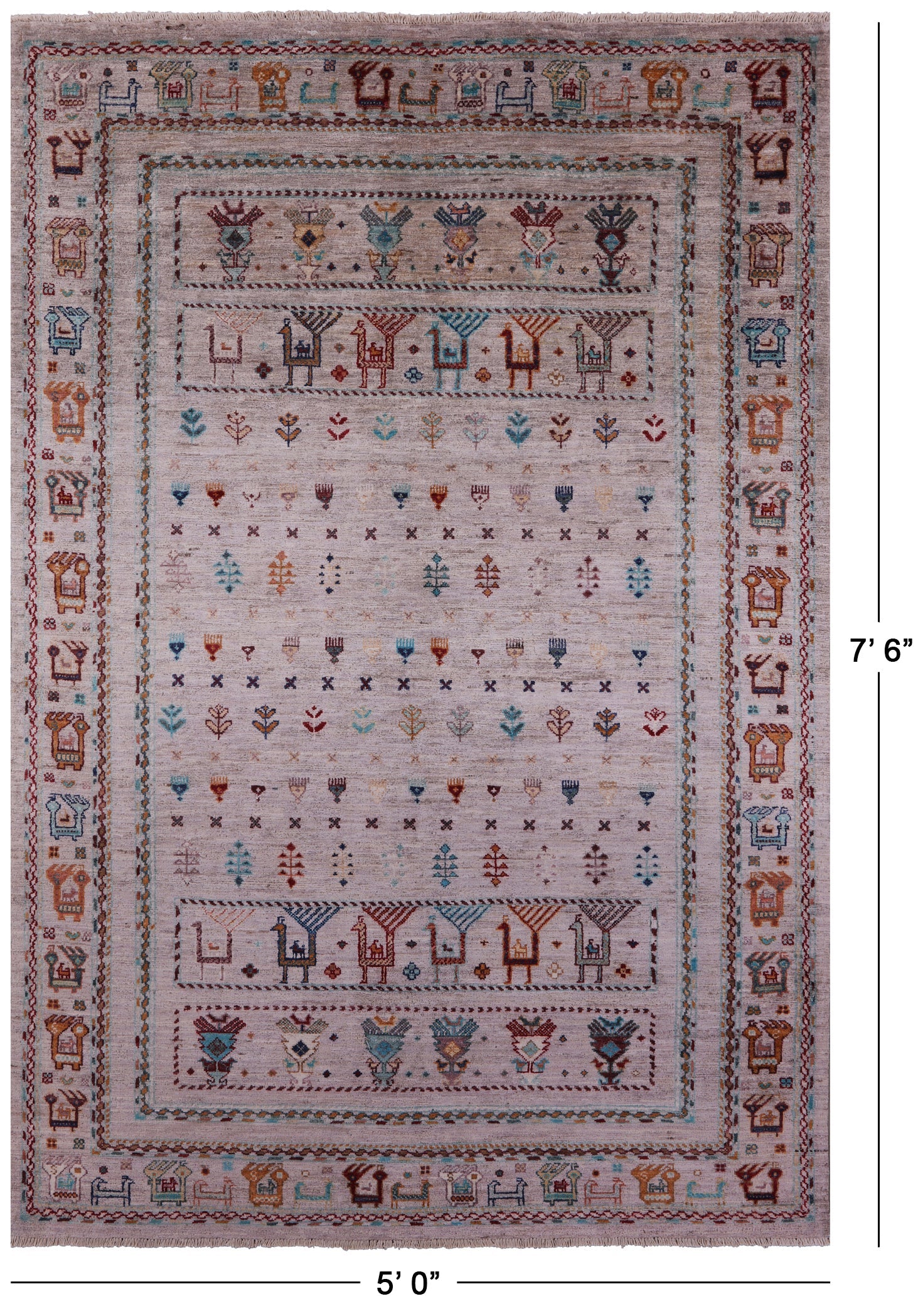 5' 0" X 7' 6" Hand-Knotted Persian Gabbeh Tribal Rug - Q20614