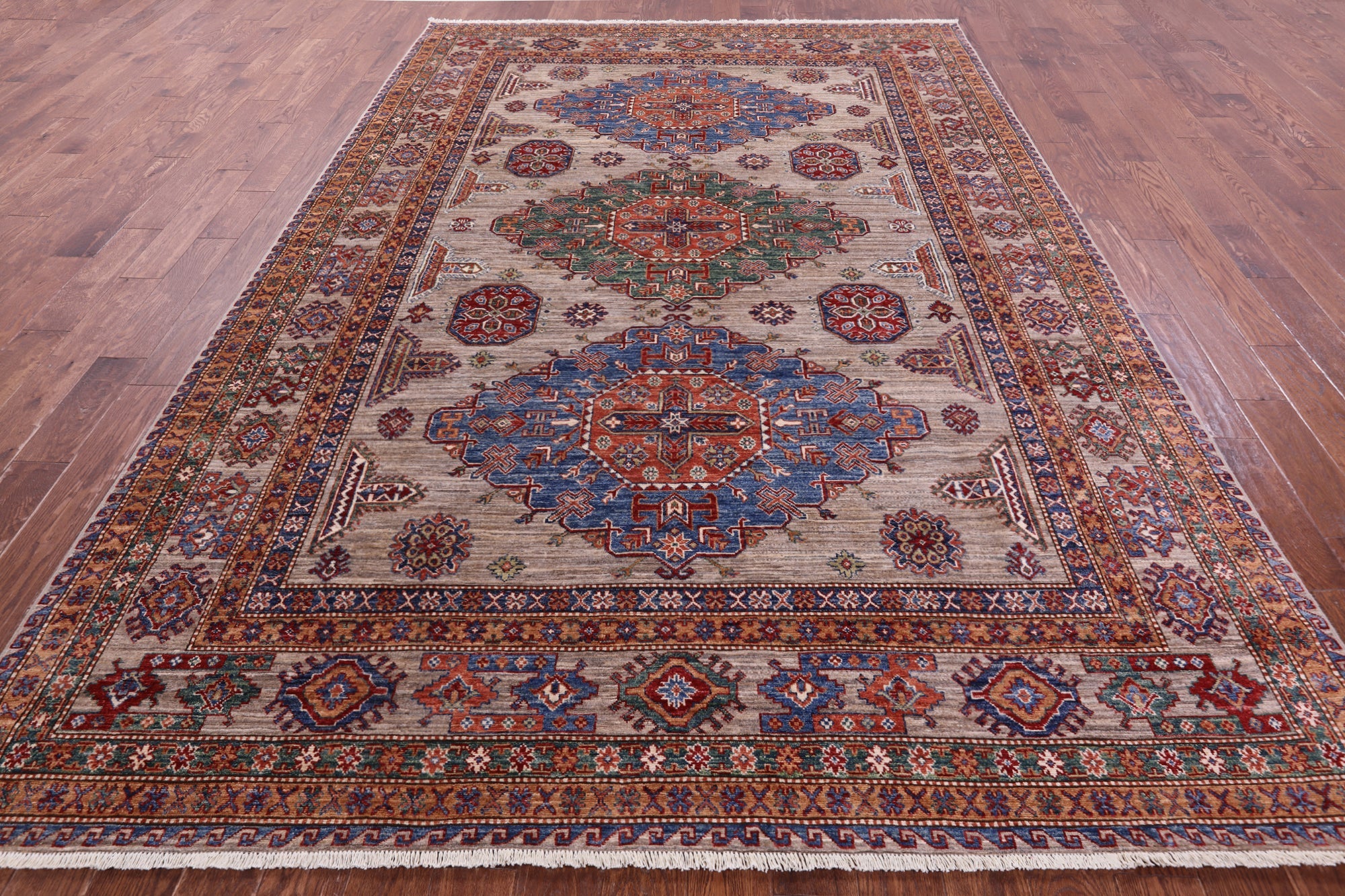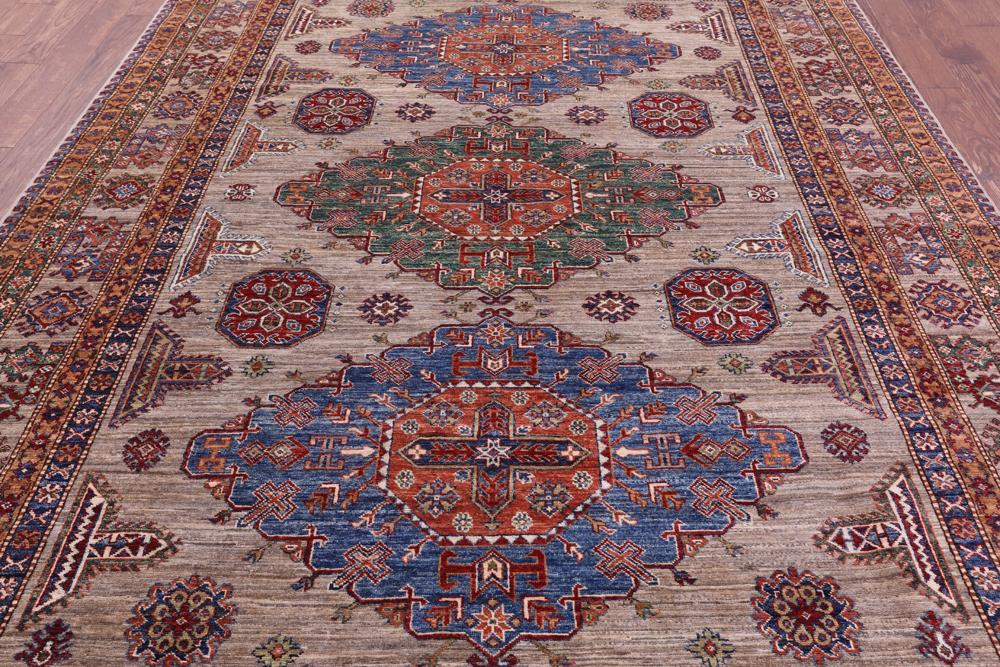 Super Kazak rugs were woven in the south of Caucasus and are very regional in their designs. Super Kazak rugs are very traditional in look and the patterns can vary from geometric shapes, tribal designs like people and animals, and symbolic medallions. They are beautifully intricate and heavy in design. These rugs come in varieties of rich, warm, jewel tones that can liven up any space.