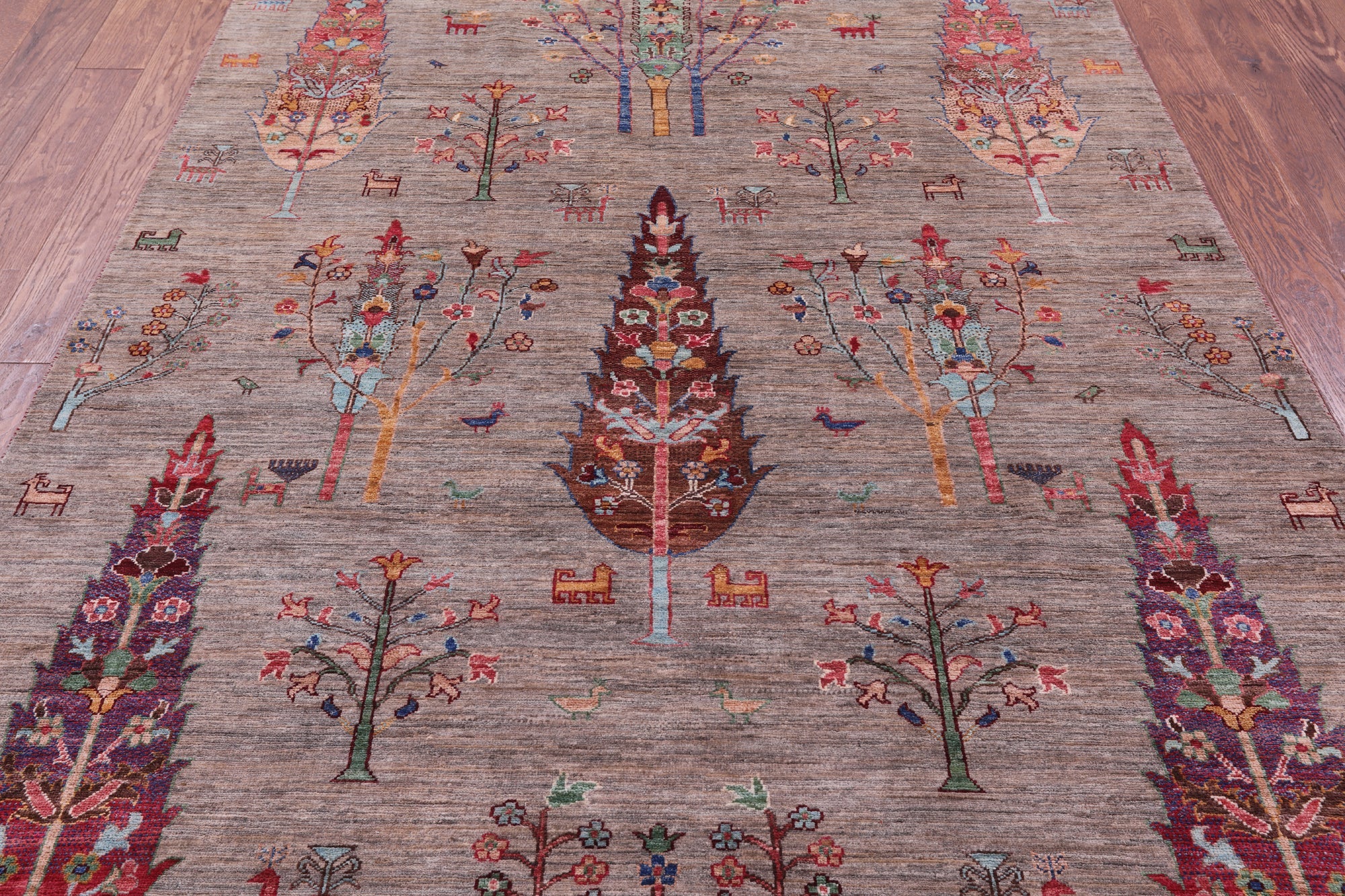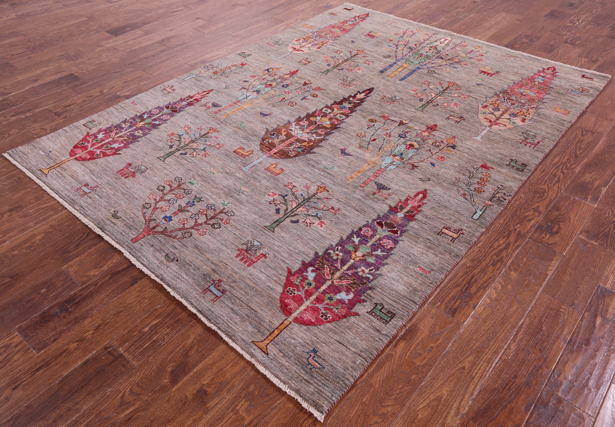 Gabbeh rugs are nothing short of simplistic and tribal, with designs consisting of primarily geometric shapes, animals, and plants. All done in a simplified way and based on the nomadic observation. Commonly brightly colored, these rugs are fun and beautiful and will add a warm touch to any home.