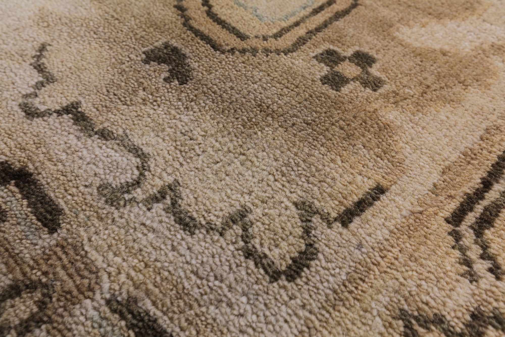 Our hand-knotted Turkish Oushak rug is a beautiful and unique piece that will add charm and warmth to any space. Made using traditional techniques, each rug is carefully crafted by skilled artisans who use only the finest wool and natural dyes. The result is a rug that is not only durable and long-lasting, but also has a rich and vibrant color palette that will complement a range of decor styles.