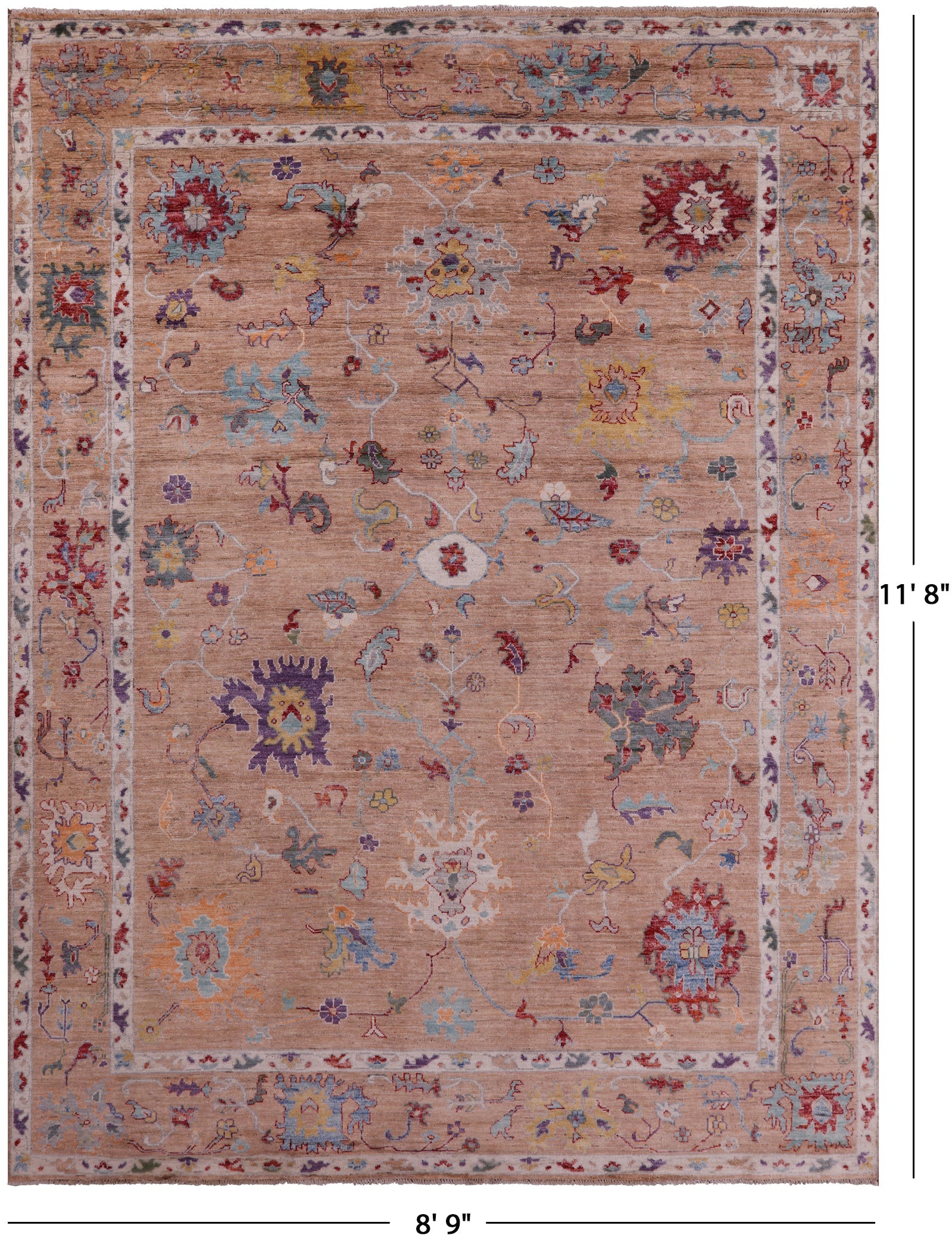 8' 9" X 11' 8" Hand-Knotted Turkish Oushak Wool Rug - Q9653