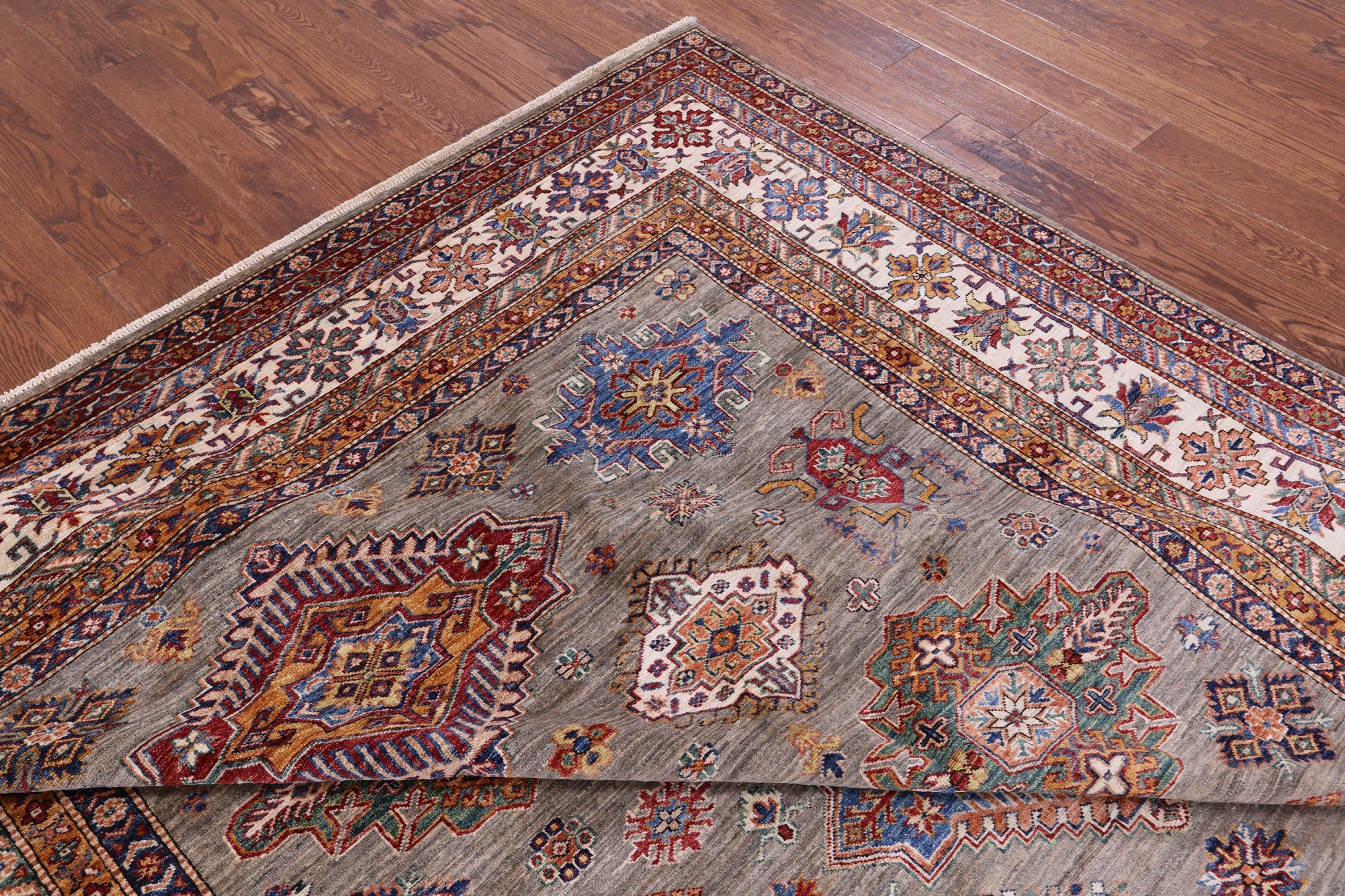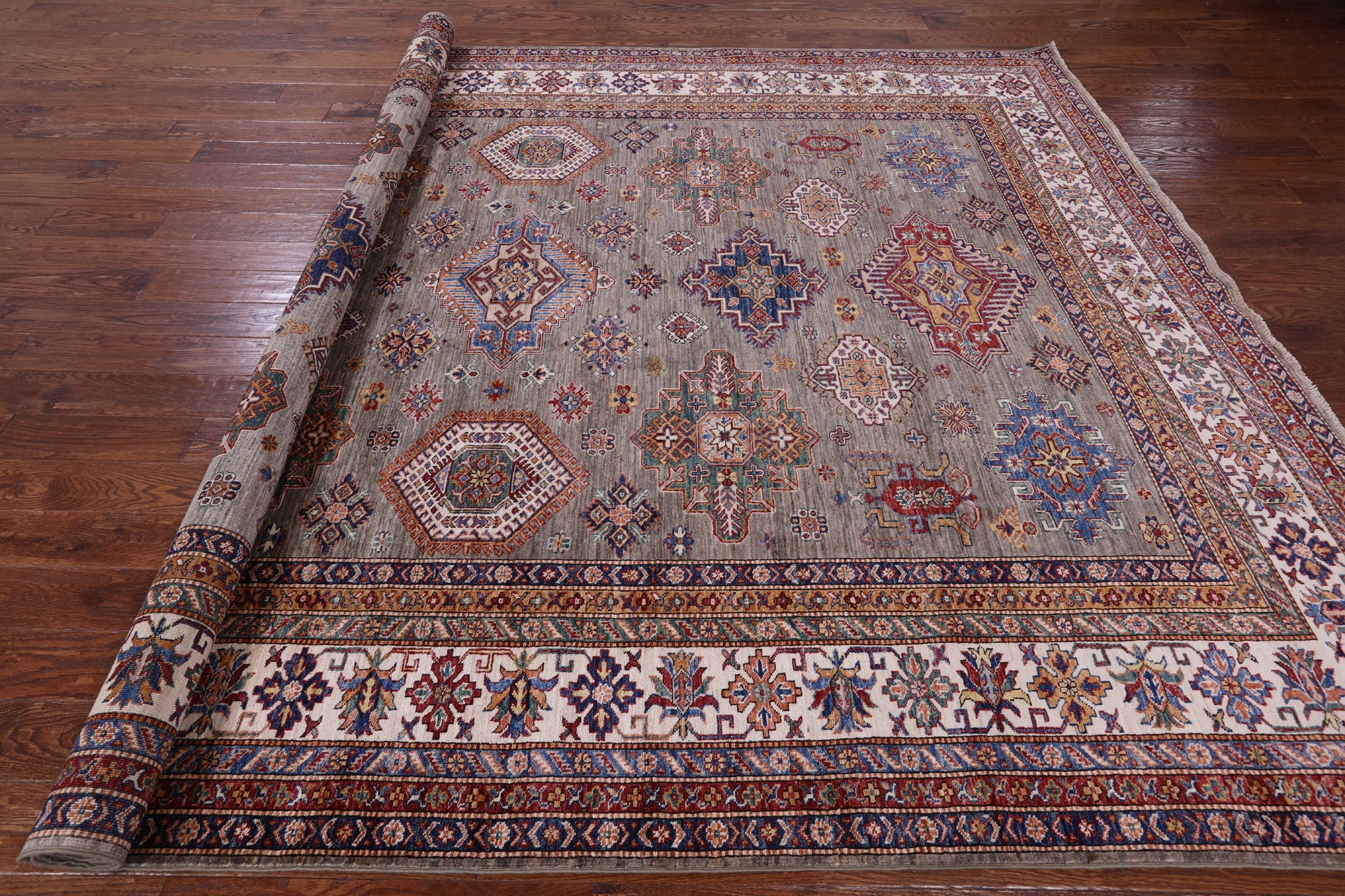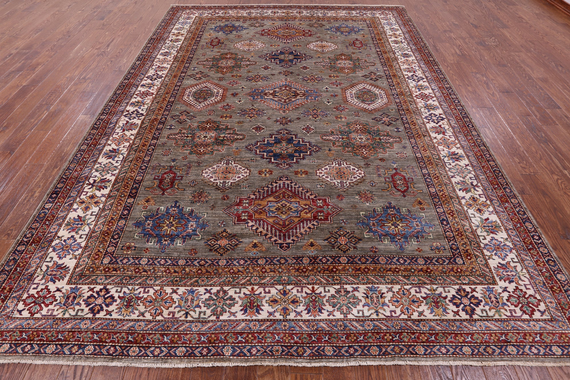 Handmade Geometric Super Kazak Wool Rug 8' 11" X 12' 1" - Q9683