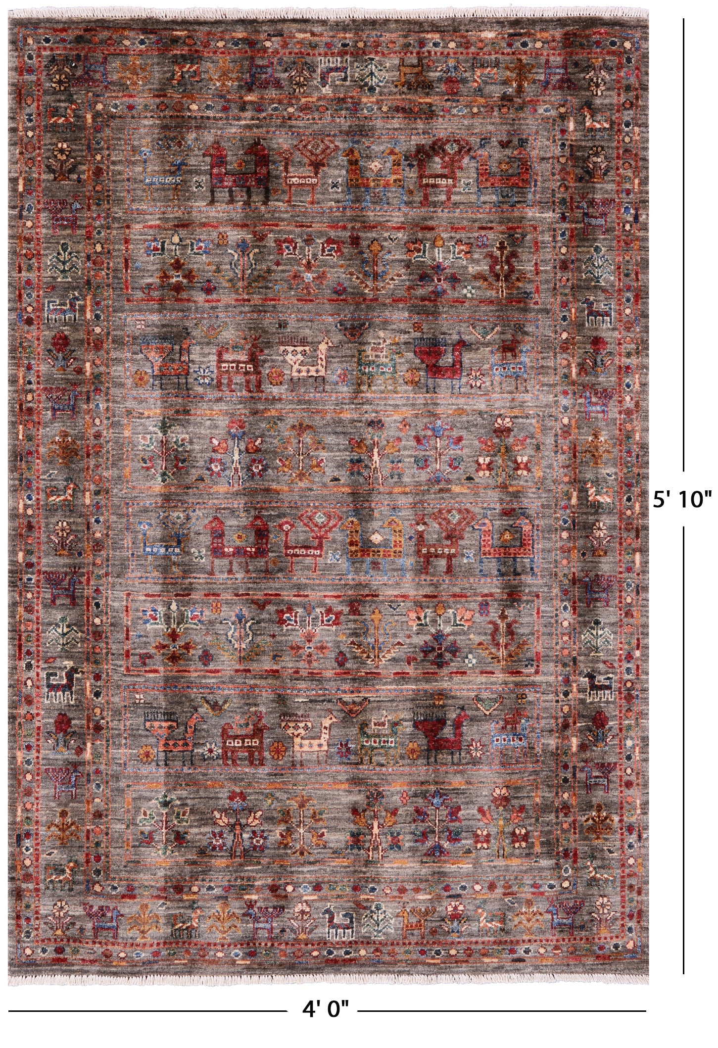 4' 0" X 5' 10" Handmade Persian Gabbeh Tribal Rug - Q14461