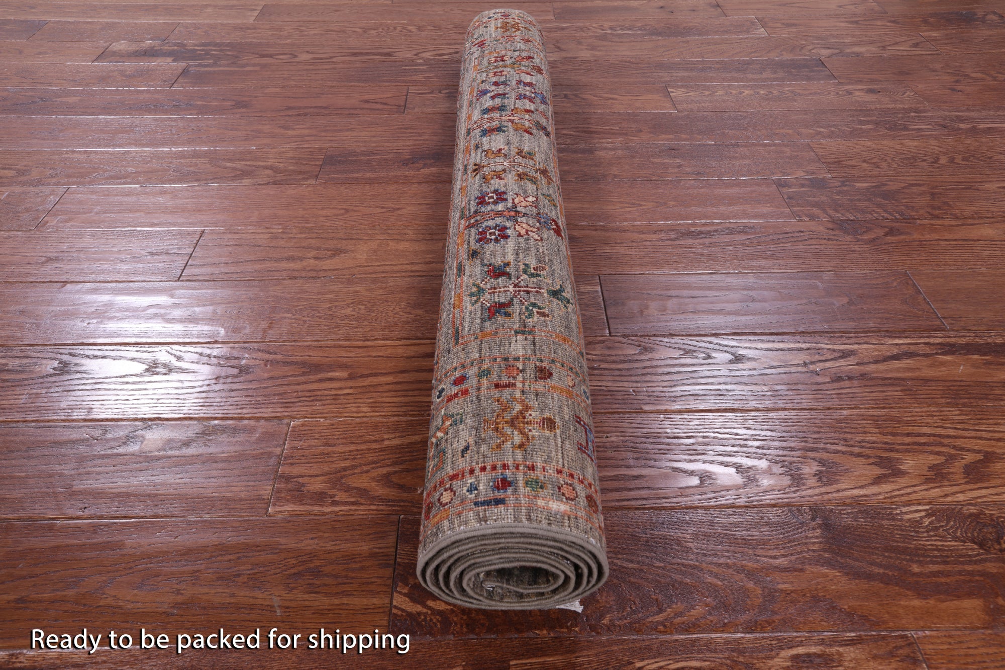 4' 0" X 5' 10" Handmade Persian Gabbeh Tribal Rug - Q14461 is backordered and will ship as soon as it is back in stock.