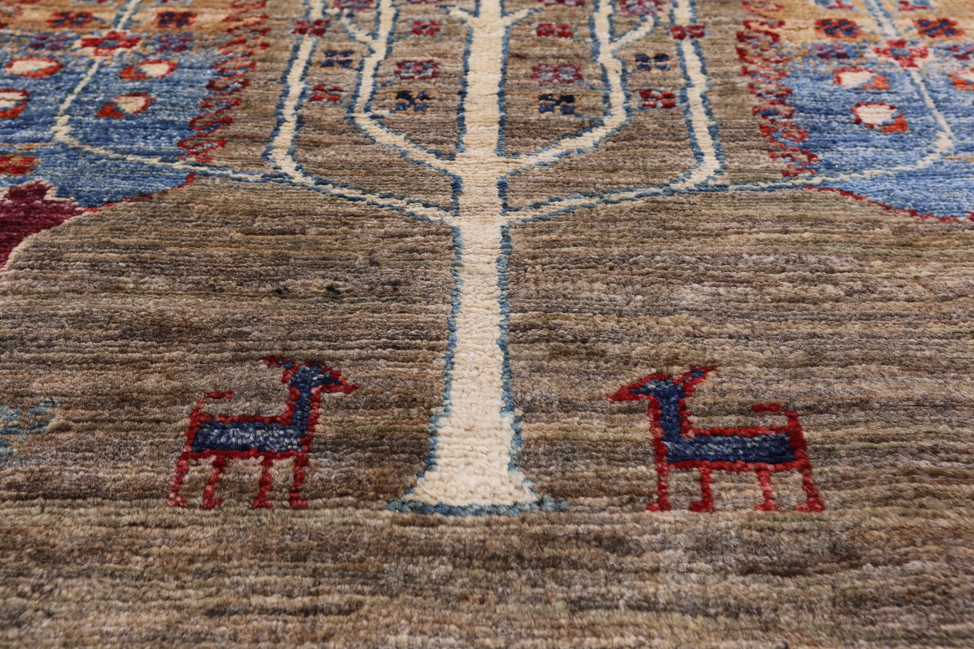 Gabbeh rugs are nothing short of simplistic and tribal, with designs consisting of primarily geometric shapes, animals, and plants. All done in a simplified way and based on the nomadic observation. Commonly brightly colored, these rugs are fun and beautiful and will add a warm touch to any home.