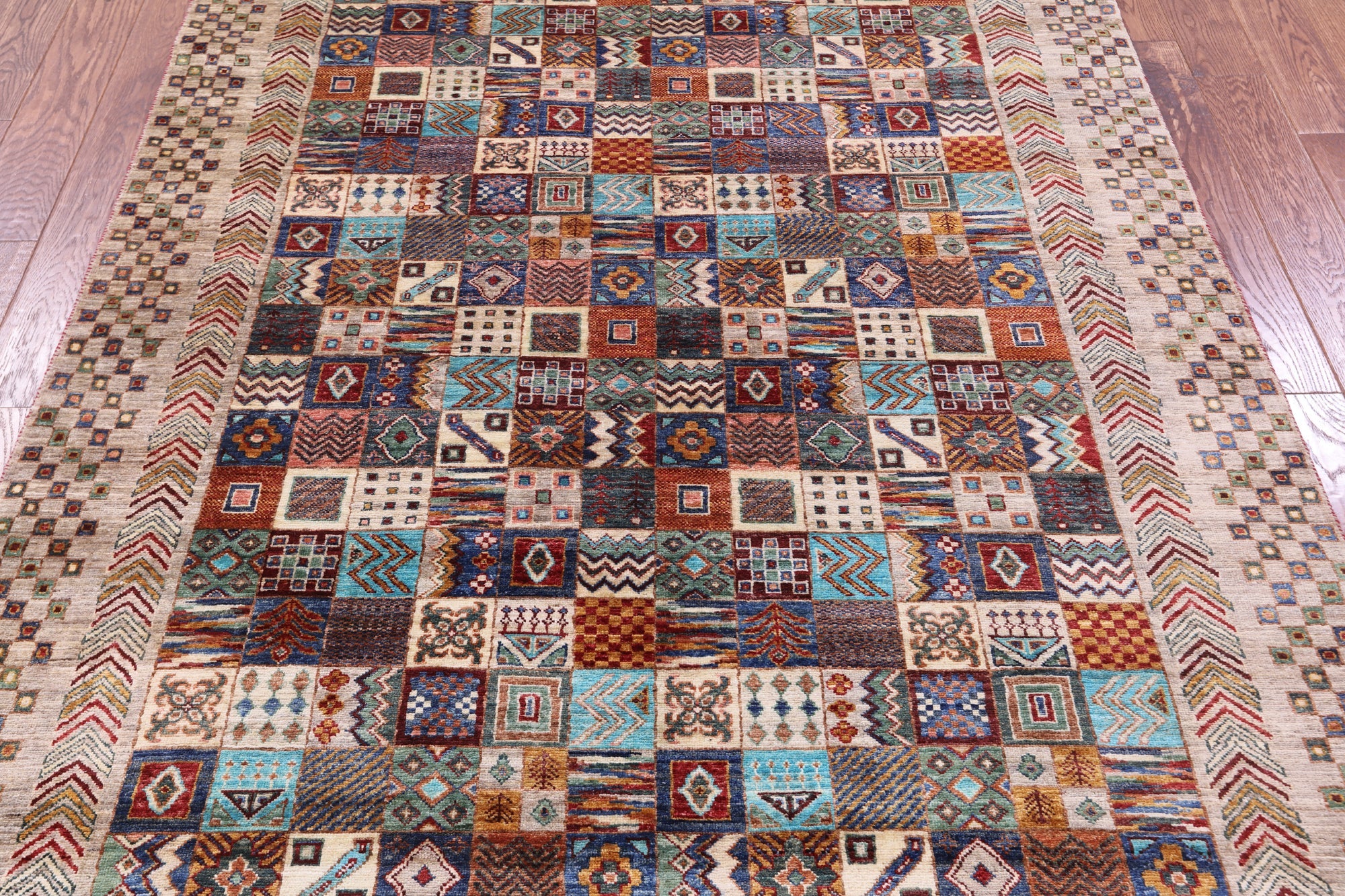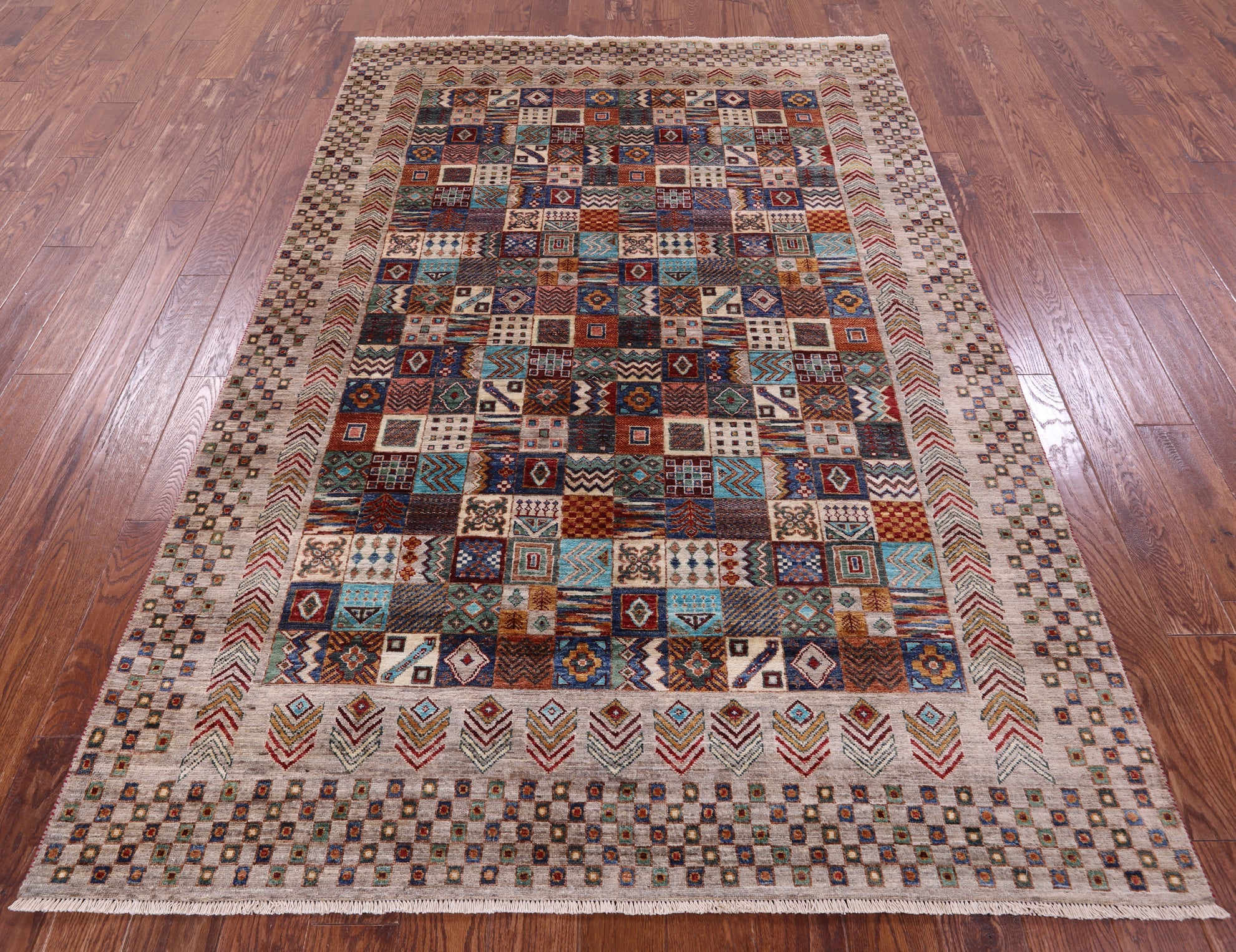 Gabbeh rugs are nothing short of simplistic and tribal, with designs consisting of primarily geometric shapes, animals, and plants. All done in a simplified way and based on the nomadic observation. Commonly brightly colored, these rugs are fun and beautiful and will add a warm touch to any home.