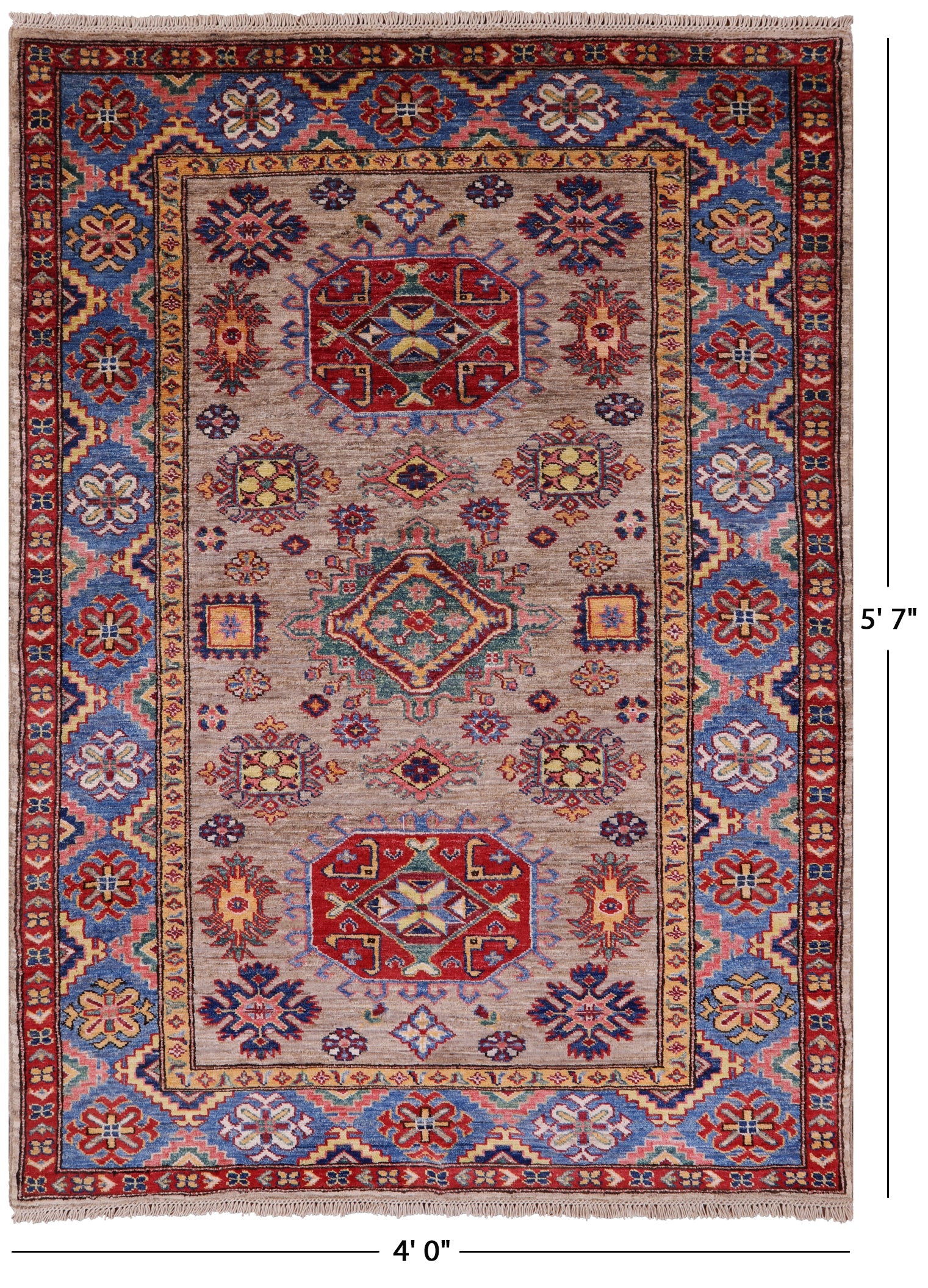 Handmade Super Kazak Wool Rug 4' 0" X 5' 7" - Q7701
