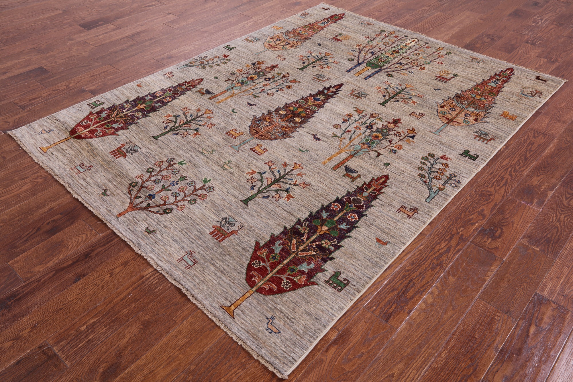 Handmade Tribal Persian Gabbeh Wool Rug 5' 7" X 7' 5" - Q12386