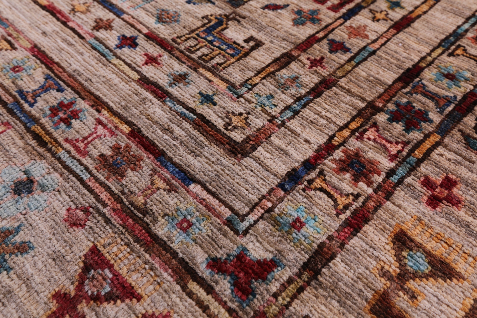 Gabbeh rugs are nothing short of simplistic and tribal, with designs consisting of primarily geometric shapes, animals, and plants. All done in a simplified way and based on the nomadic observation. Commonly brightly colored, these rugs are fun and beautiful and will add a warm touch to any home.