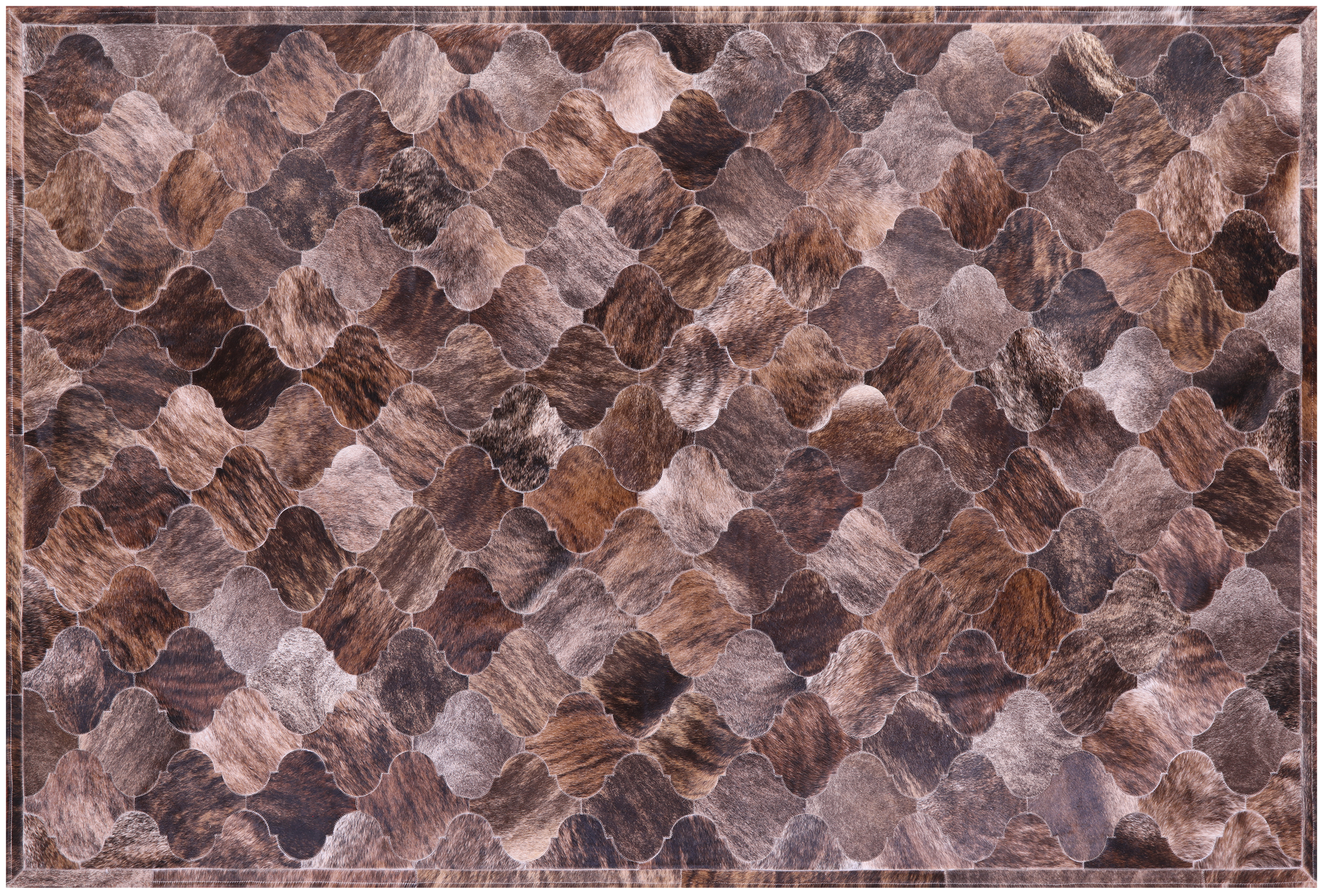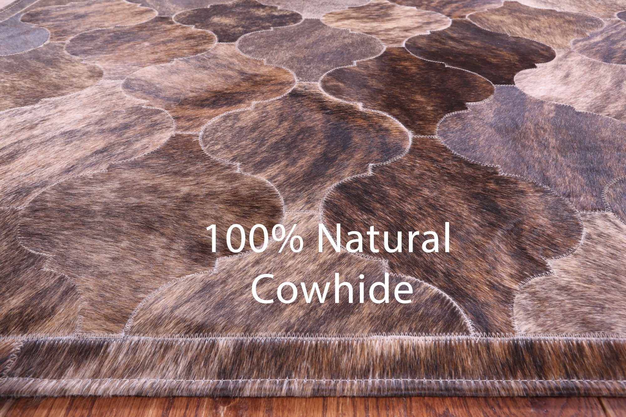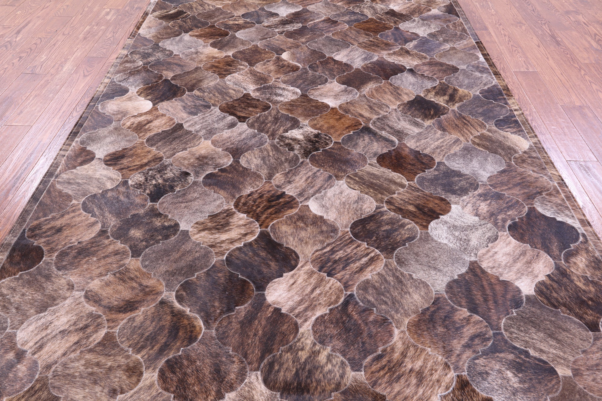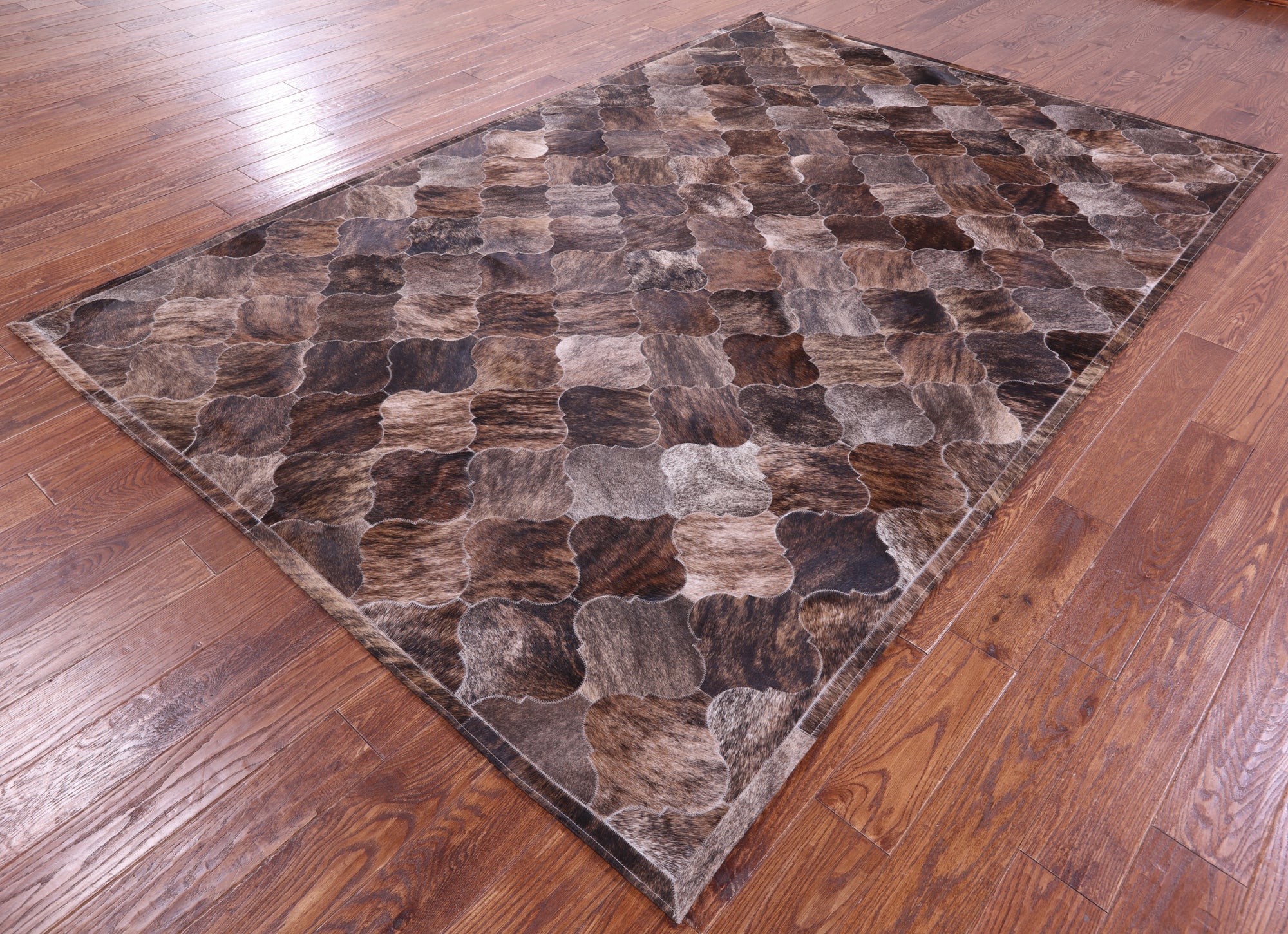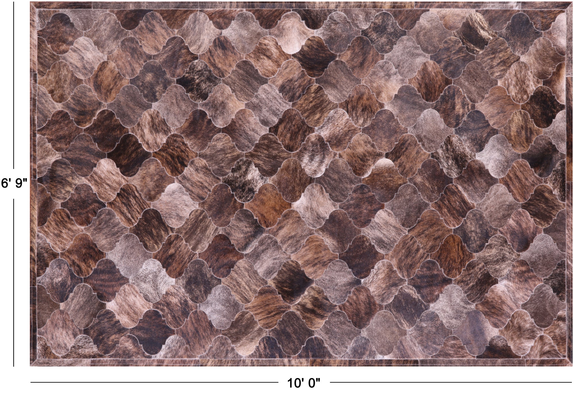 6' 9" X 10' 0" Lantern Tile Brown Brindle Natural Cowhide Hand Stitched Rug - C3456