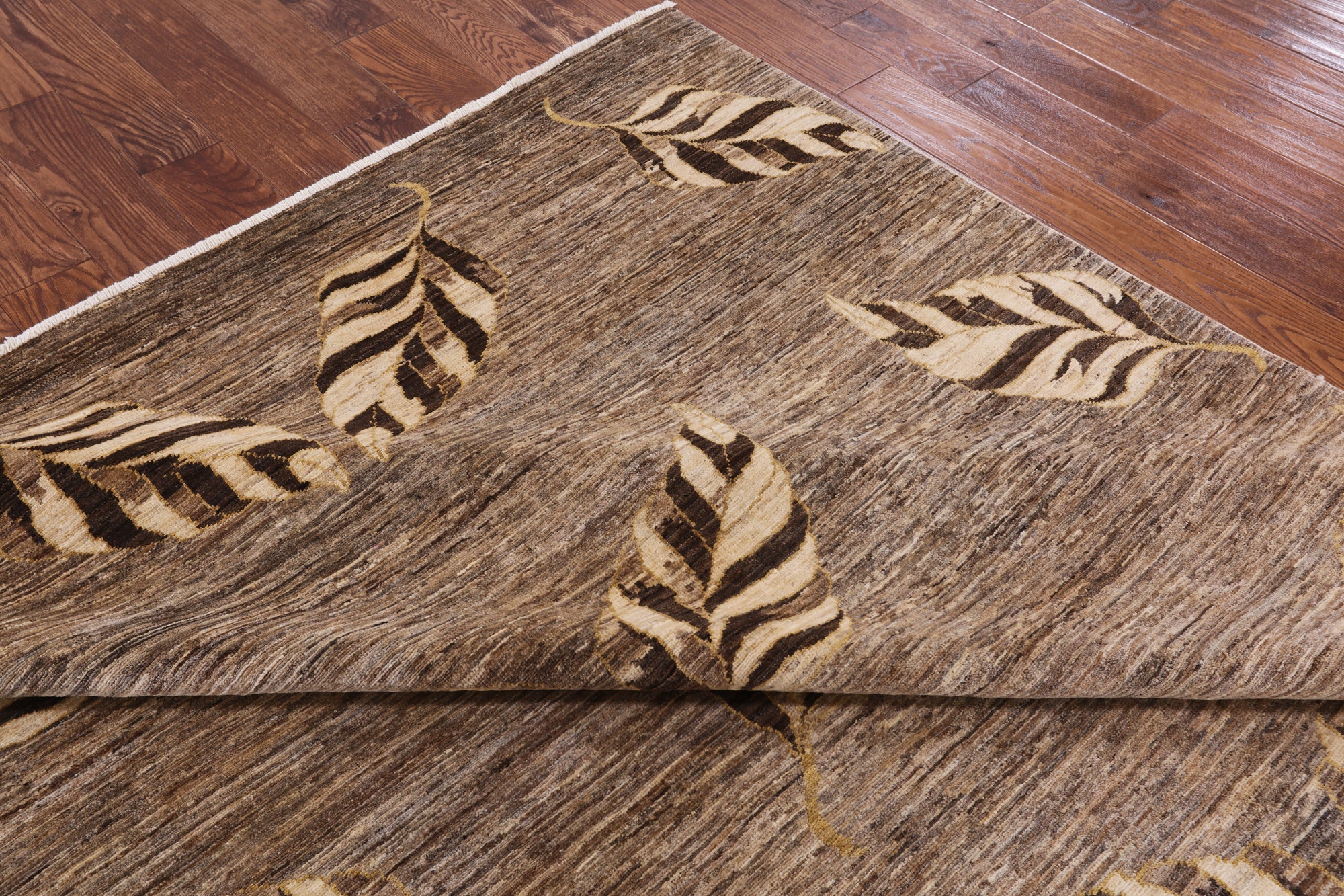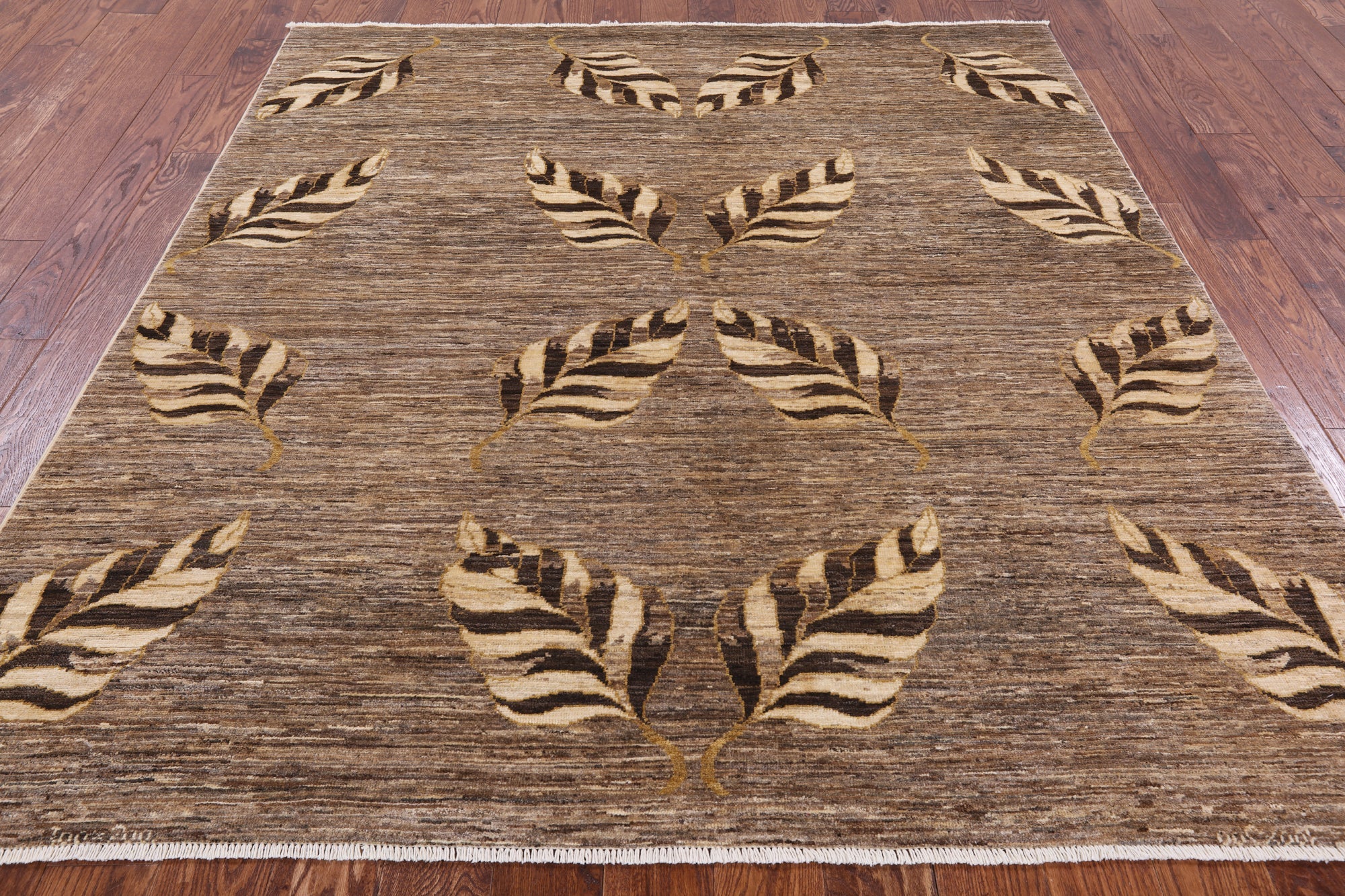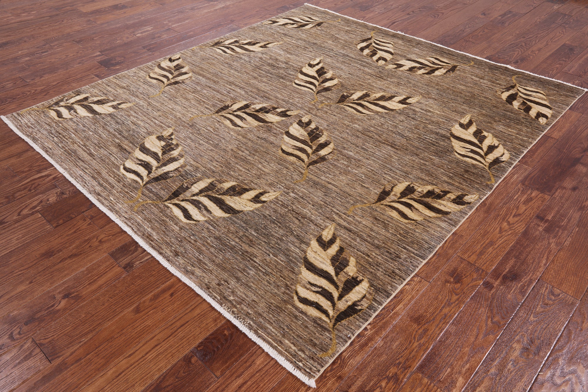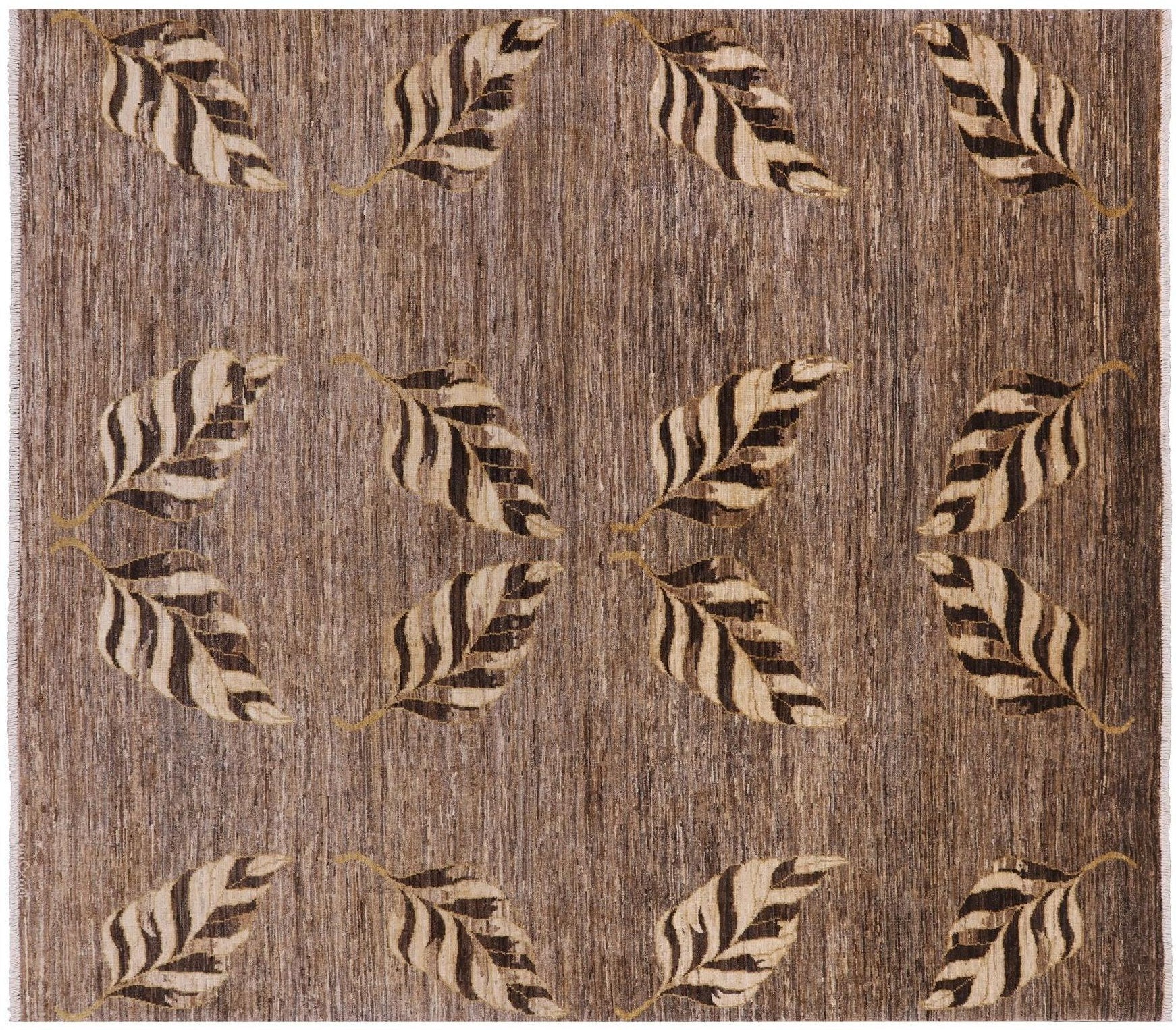 6' 8" X 7' 6" Modern Hand Knotted Wool Natural Area Rug - Q1861