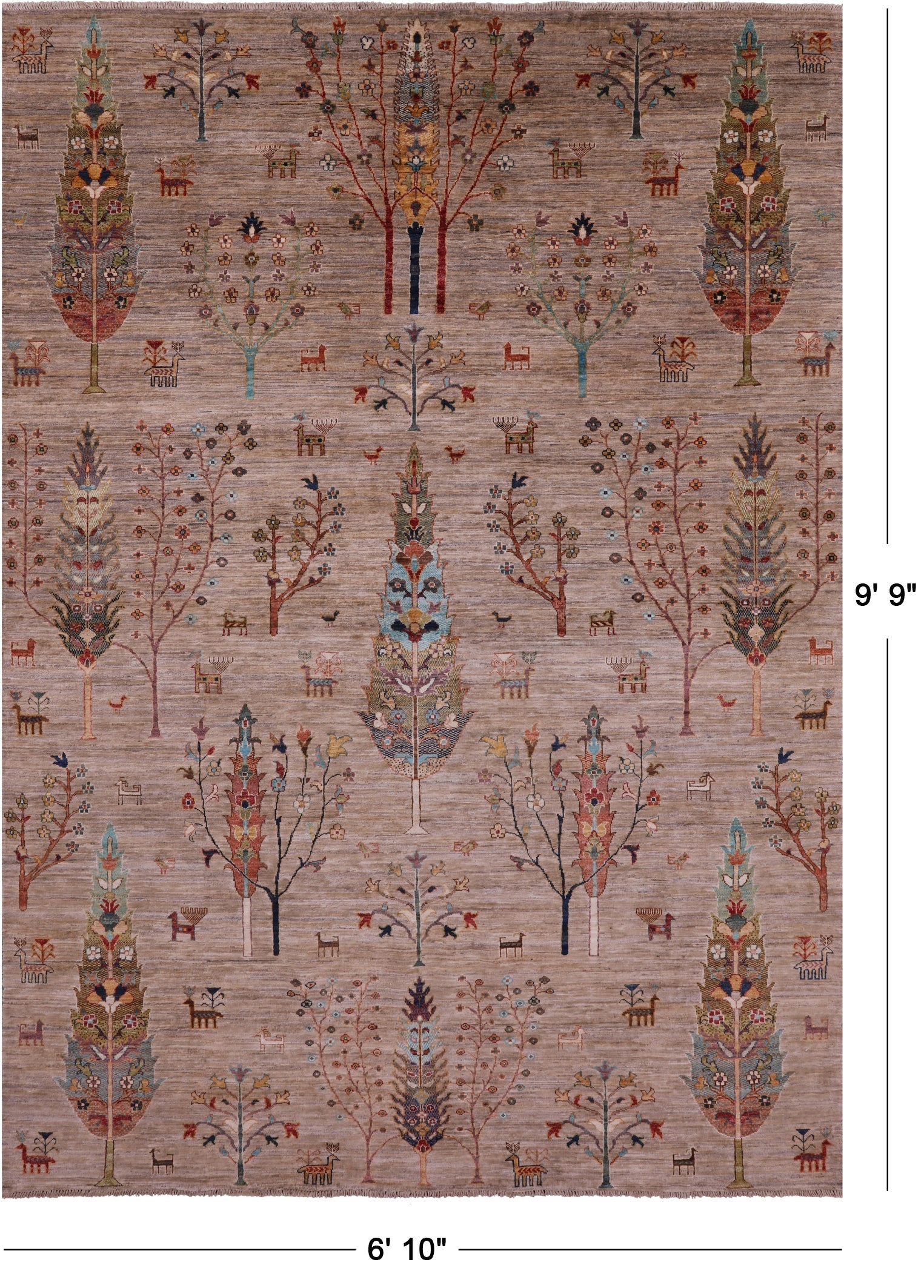 Gabbeh rugs are nothing short of simplistic and tribal, with designs consisting of primarily geometric shapes, animals, and plants. All done in a simplified way and based on the nomadic observation. Commonly brightly colored, these rugs are fun and beautiful and will add a warm touch to any home.