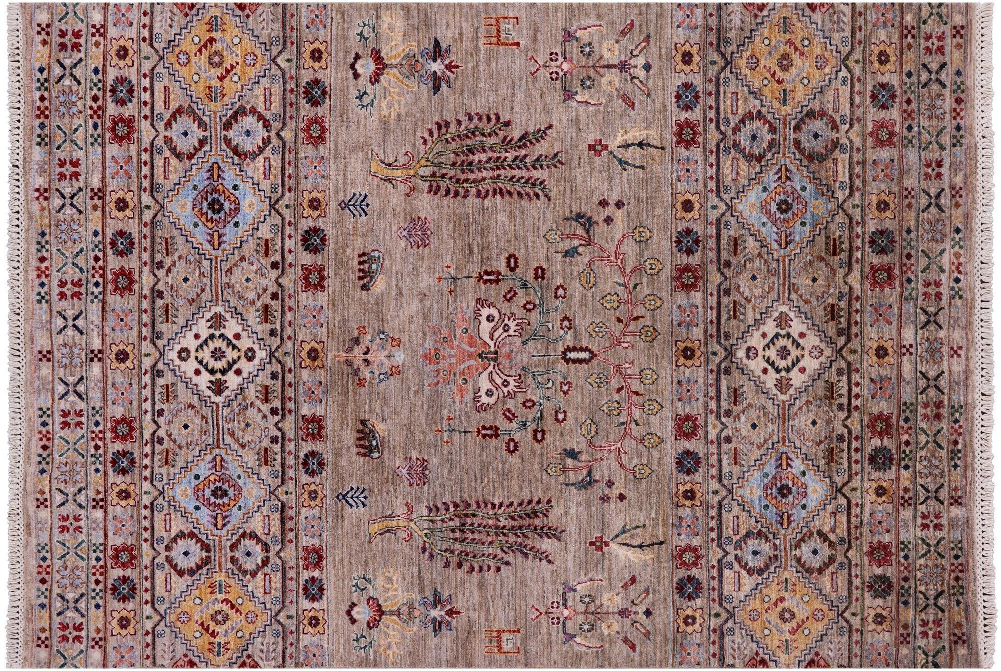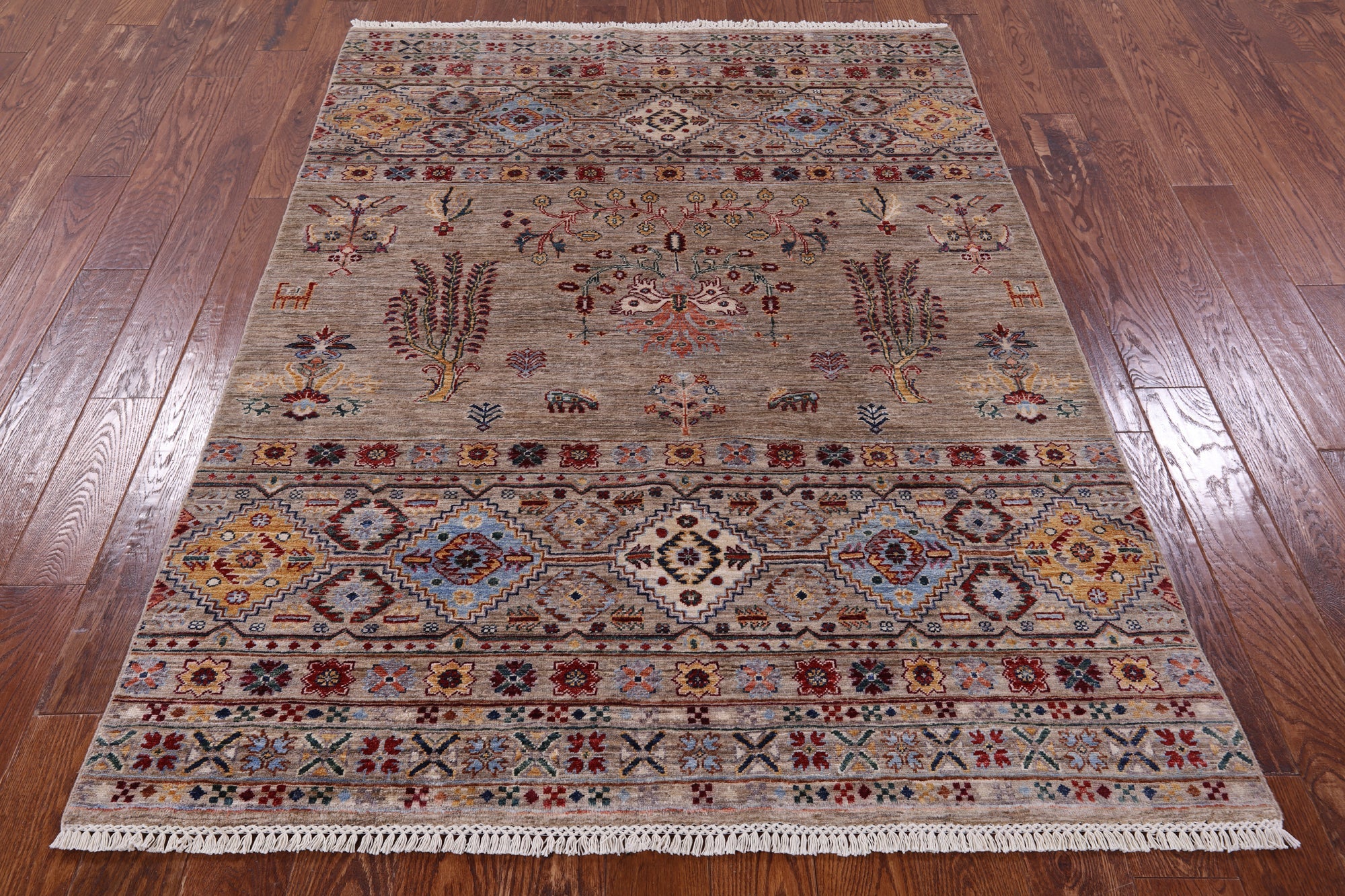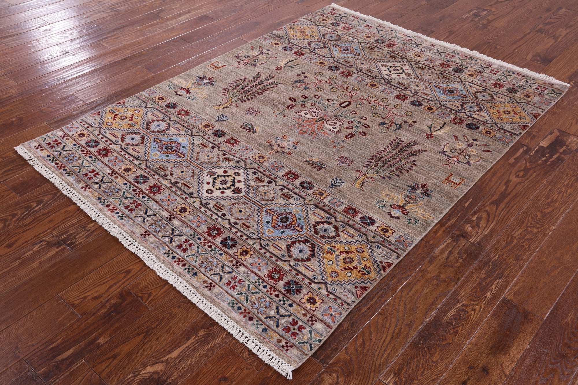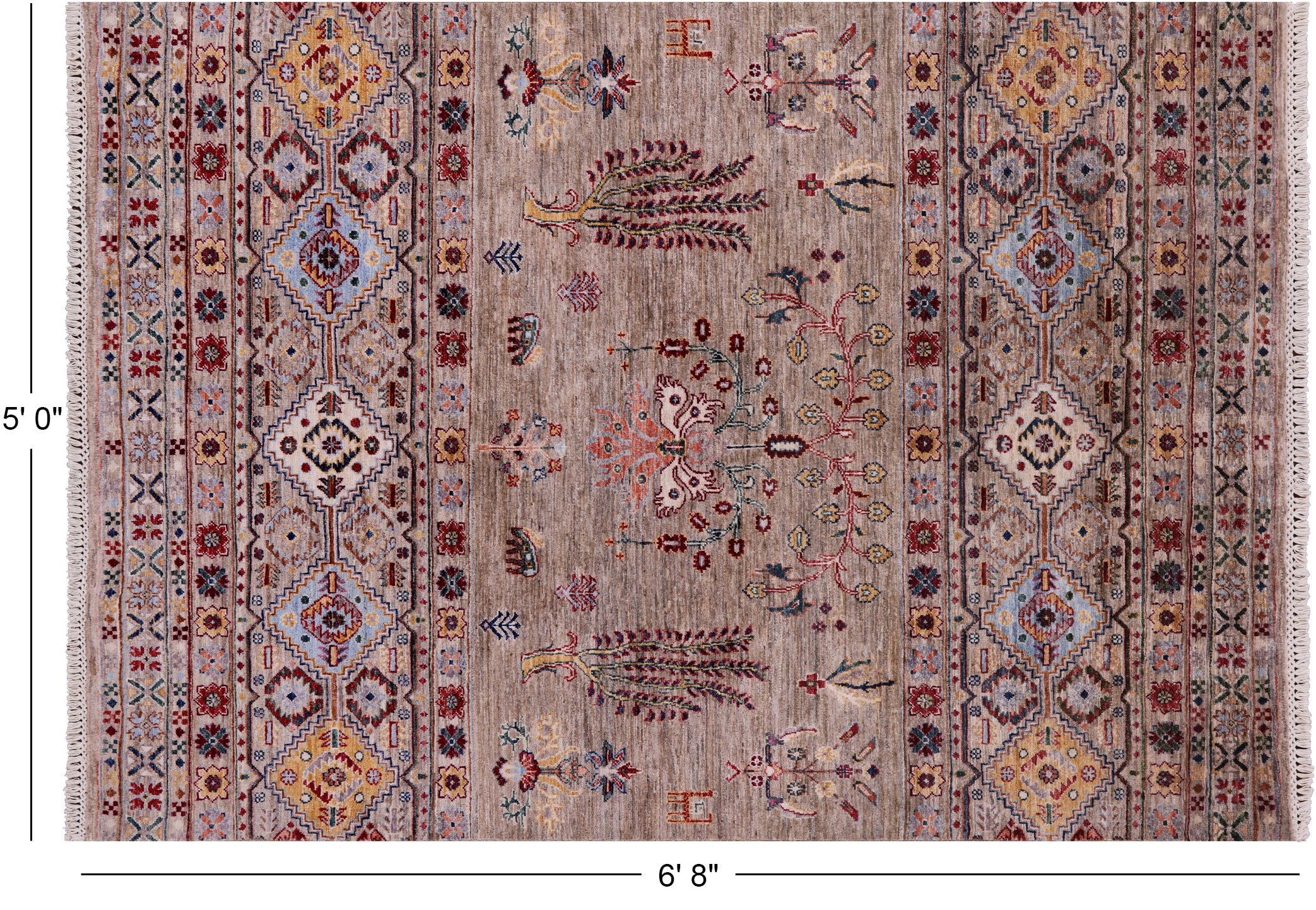 Persian Gabbeh Tribal Hand Knotted Wool Rug 5' 0" X 6' 8" - Q10092