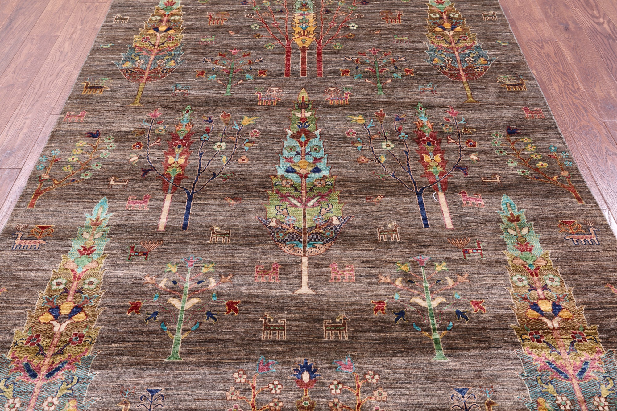 Gabbeh rugs are nothing short of simplistic and tribal, with designs consisting of primarily geometric shapes, animals, and plants. All done in a simplified way and based on the nomadic observation. Commonly brightly colored, these rugs are fun and beautiful and will add a warm touch to any home.