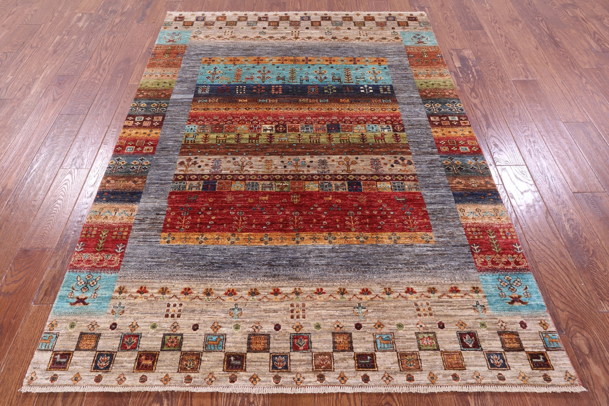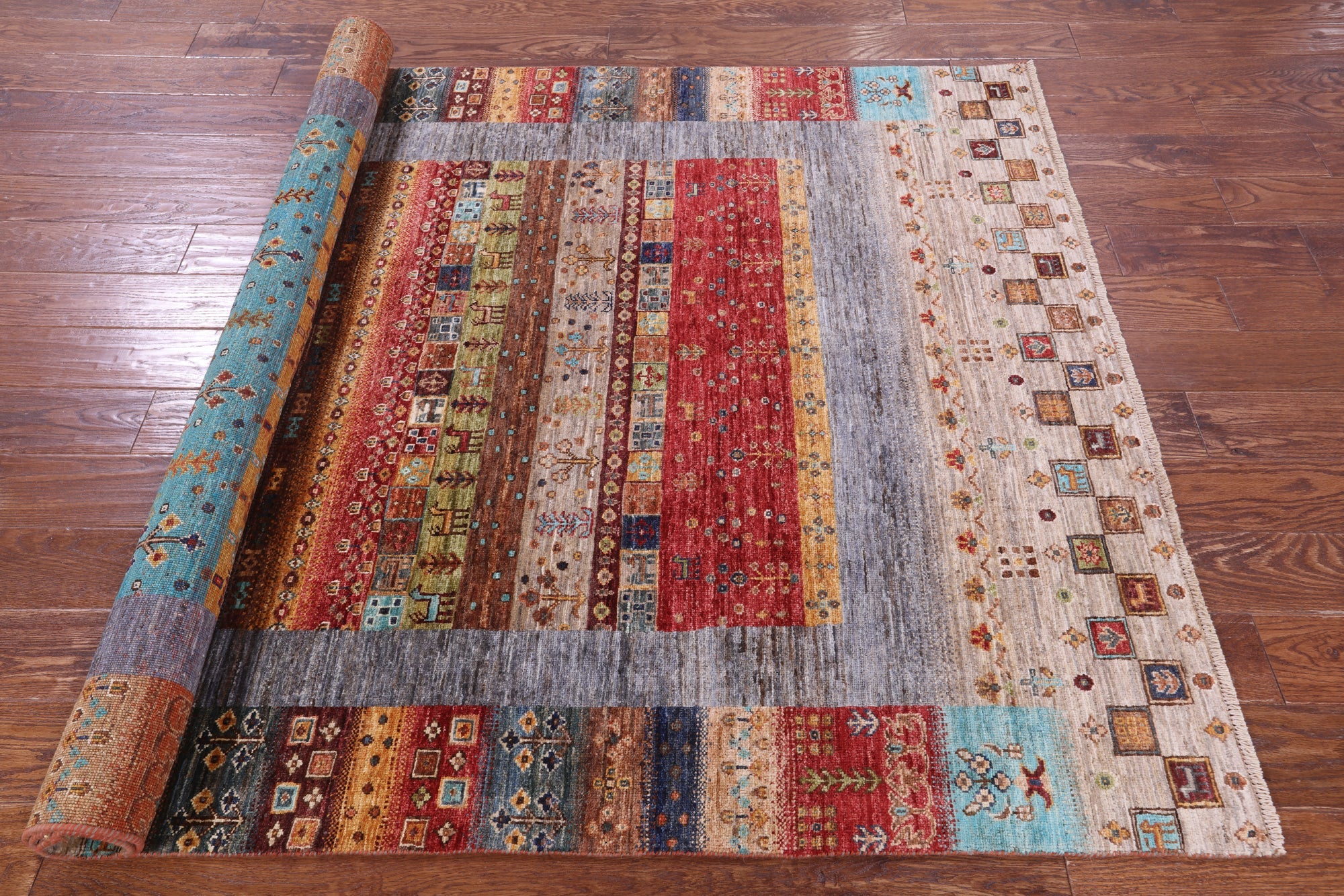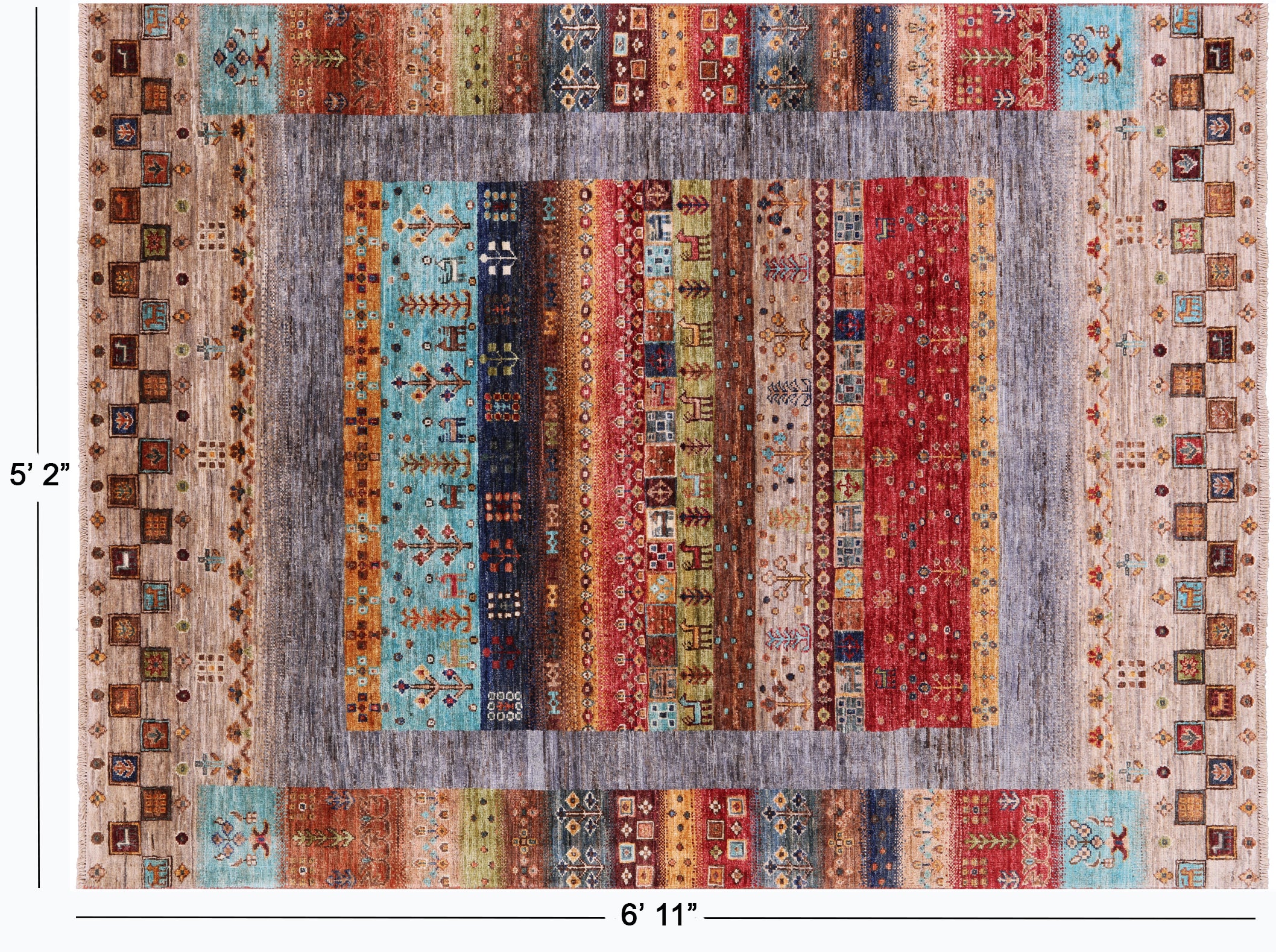 5' 2" X 6' 11" Persian Gabbeh Tribal Hand Knotted Wool Rug - Q20780