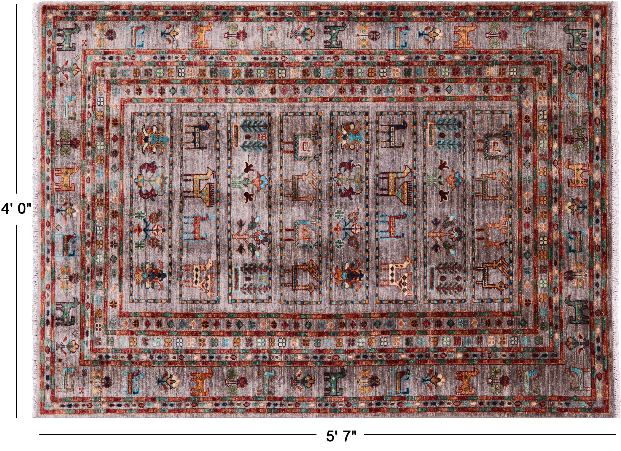 4' 0" X 5' 7" Persian Gabbeh Tribal Handmade Wool Rug - Q14462