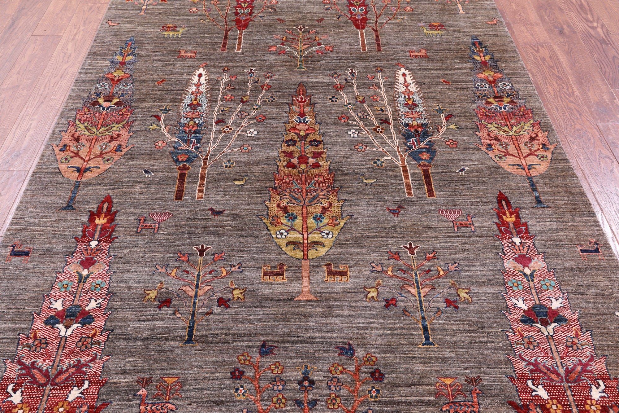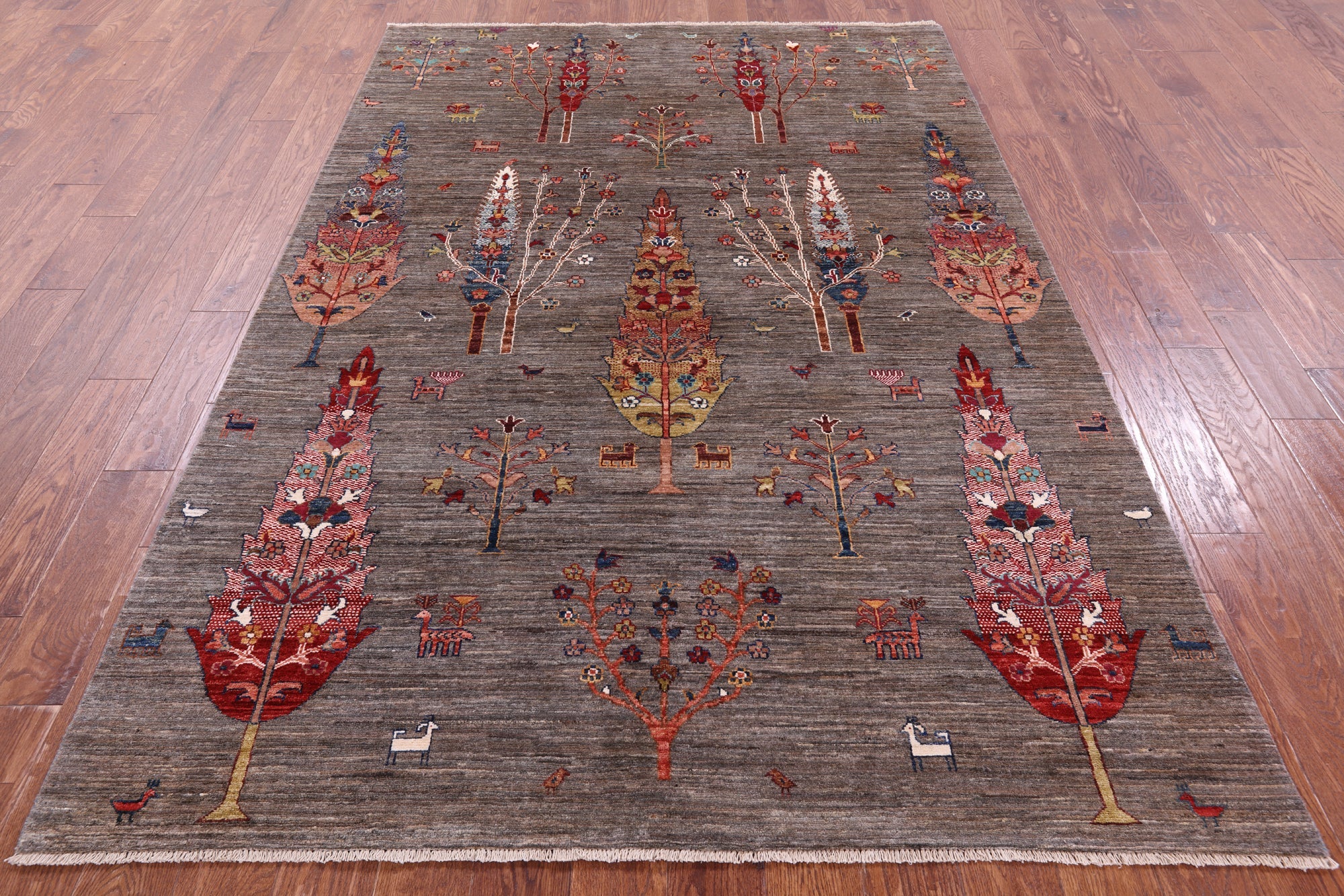 Gabbeh rugs are nothing short of simplistic and tribal, with designs consisting of primarily geometric shapes, animals, and plants. All done in a simplified way and based on the nomadic observation. Commonly brightly colored, these rugs are fun and beautiful and will add a warm touch to any home.