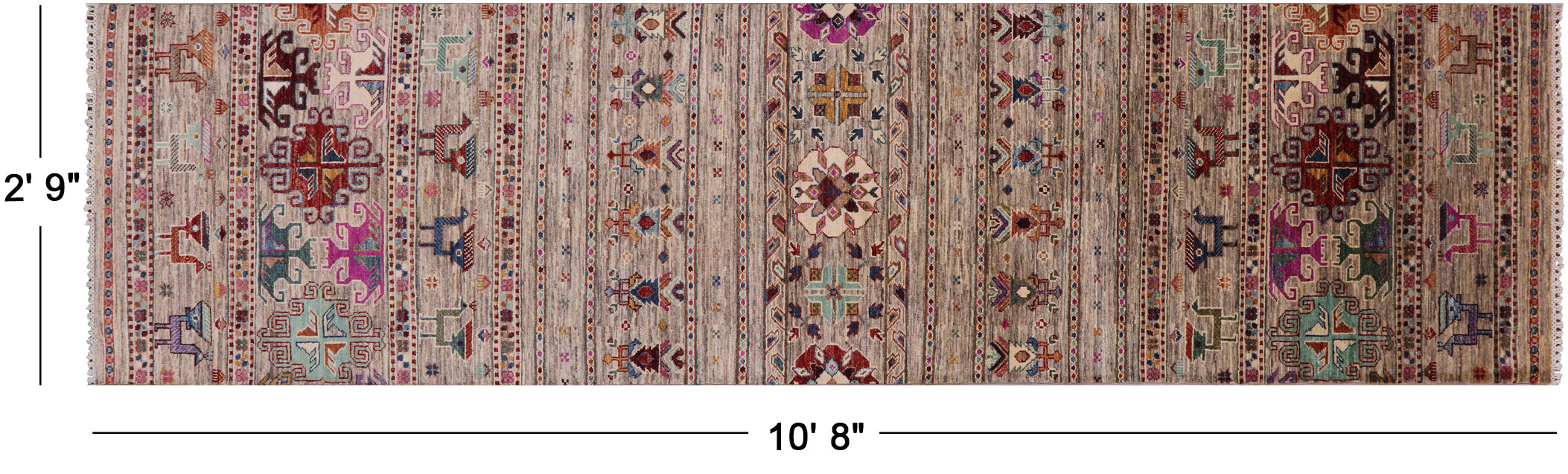 2' 9" X 10' 8" Runner Handmade Tribal Persian Gabbeh Rug - Q12382 is backordered and will ship as soon as it is back in stock.