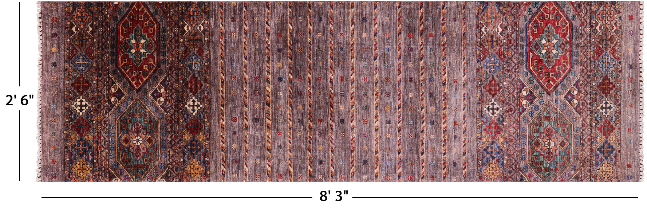 2' 6" X 8' 3" Runner Khorjin Super Kazak Hand-Knotted Rug - Q21021 is backordered and will ship as soon as it is back in stock.