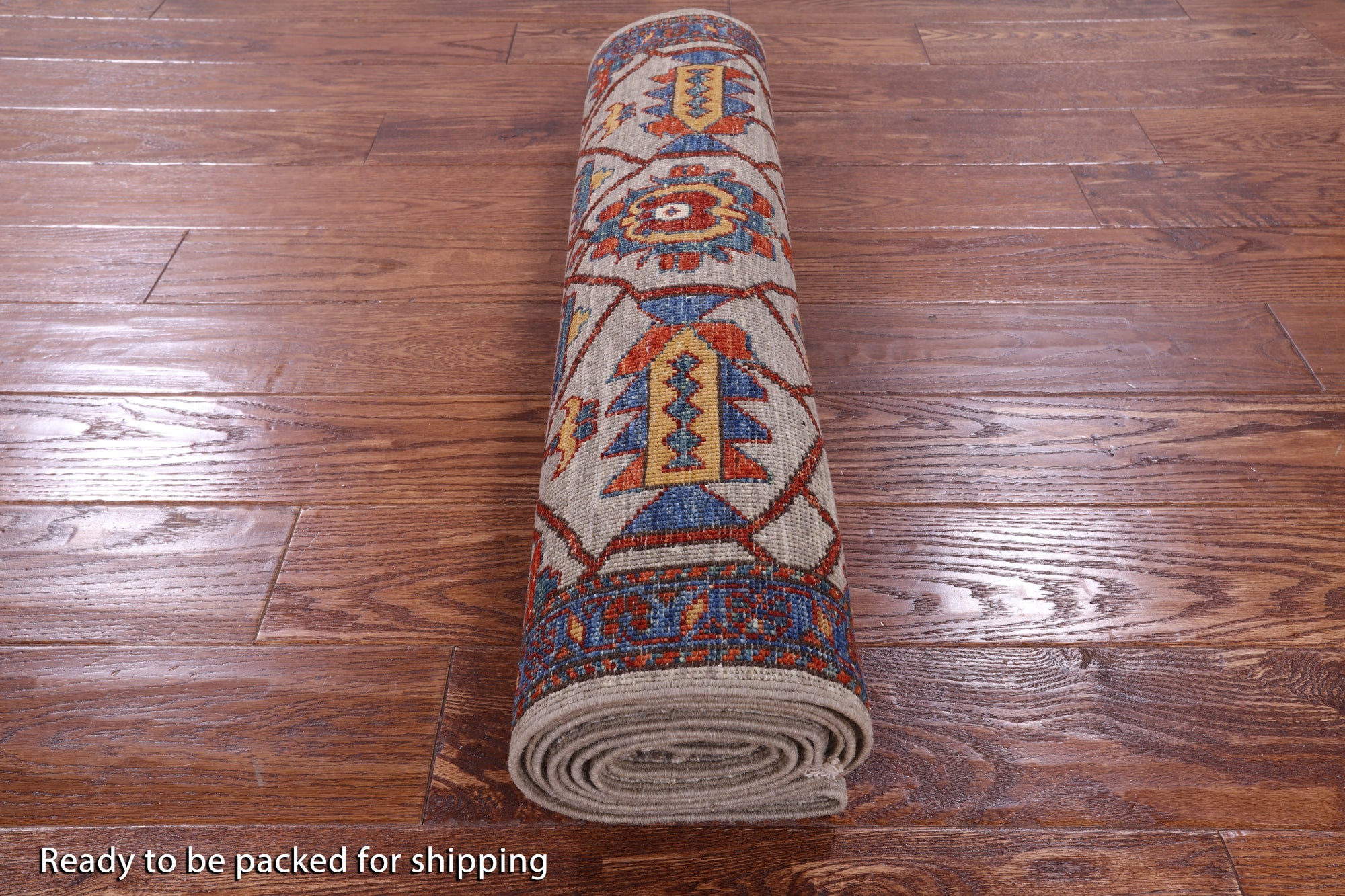 Heriz, Serapi rugs are well known for their bold and angular designs. Many being symmetric, they withhold boldly done geometric and floral-inspired shapes. These shapes are brought out with rich reds, blues, greens, and yellows contrasted against ivory. Heriz, Serapi rugs are very elegant and durable, perfect for a variety of different rooms and spaces within a home.