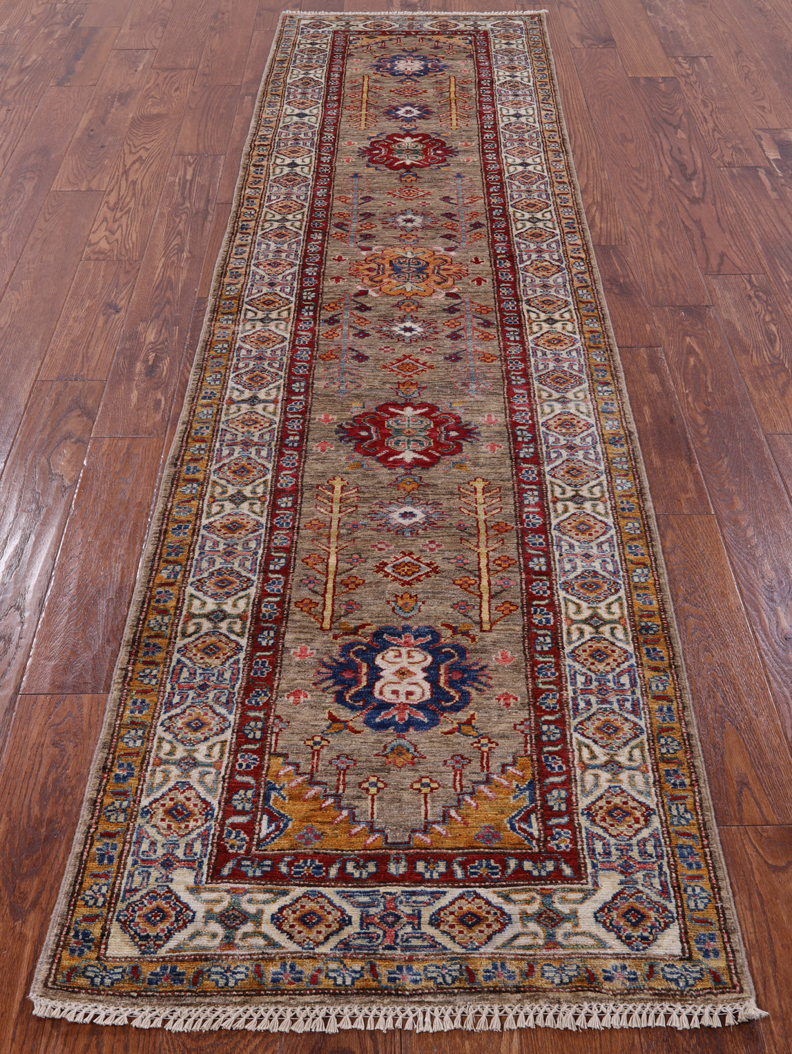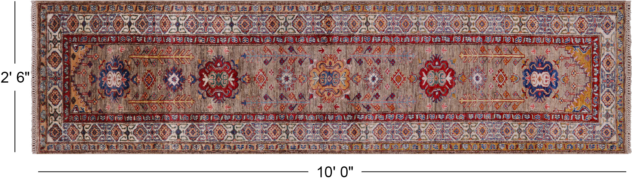 2' 6" X 10' 0" Runner Super Kazak Hand-Knotted Wool Rug - Q8346