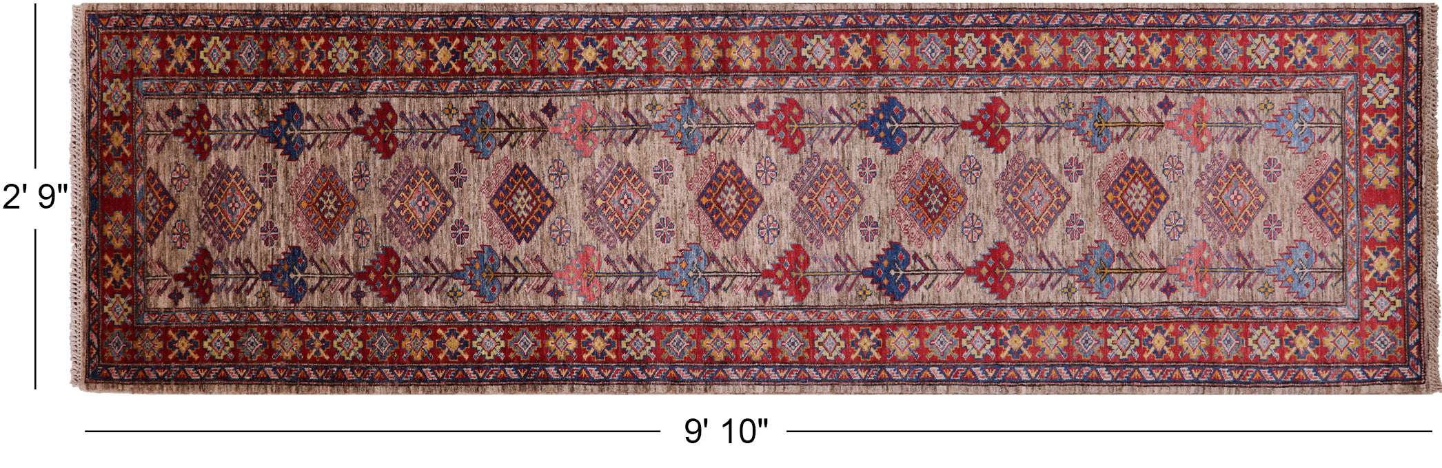 2' 9" X 9' 10" Runner Super Kazak Handmade Wool Rug - Q7498