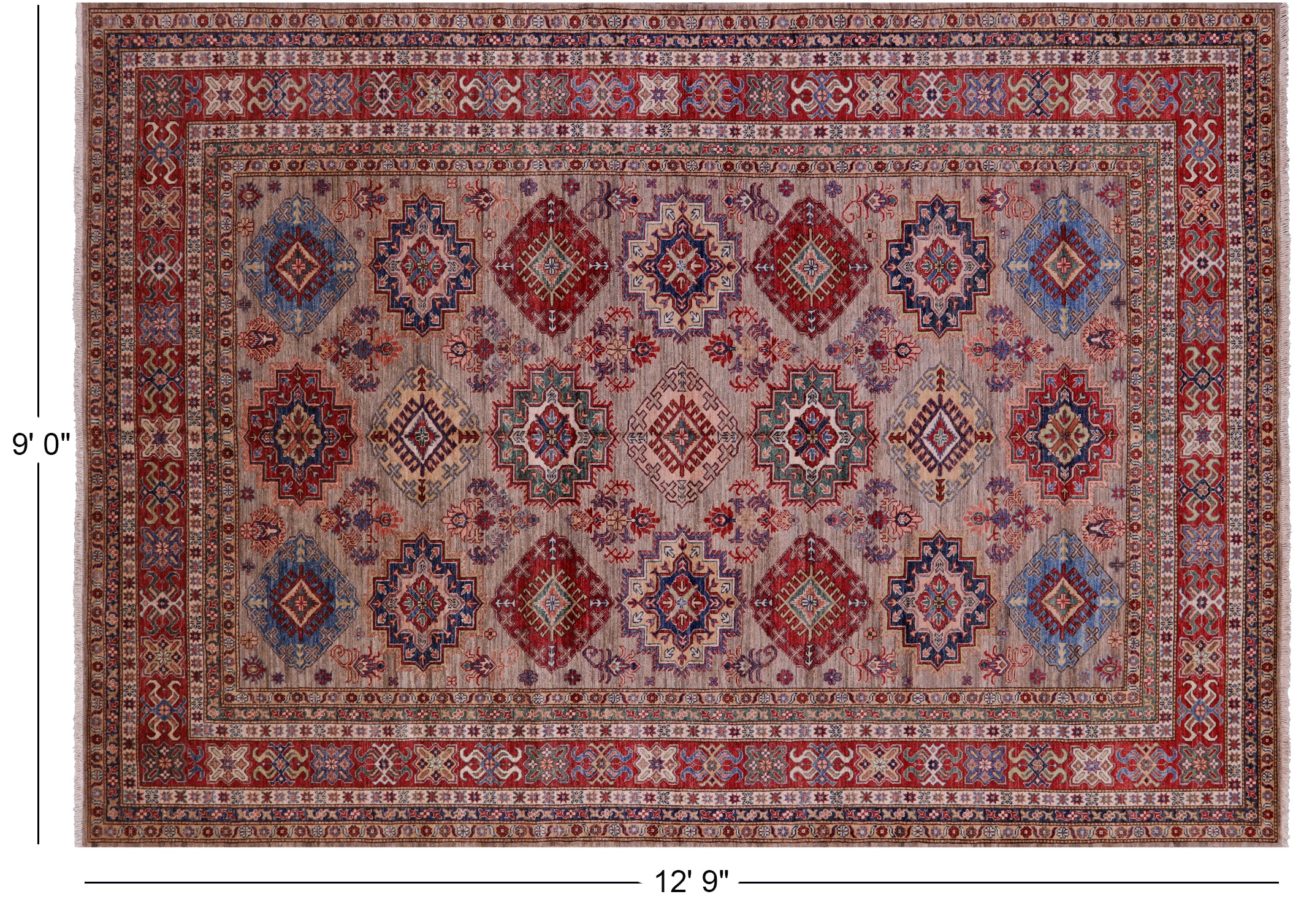 Super Kazak Hand Knotted Wool Rug 9' 0" X 12' 9" - Q22003