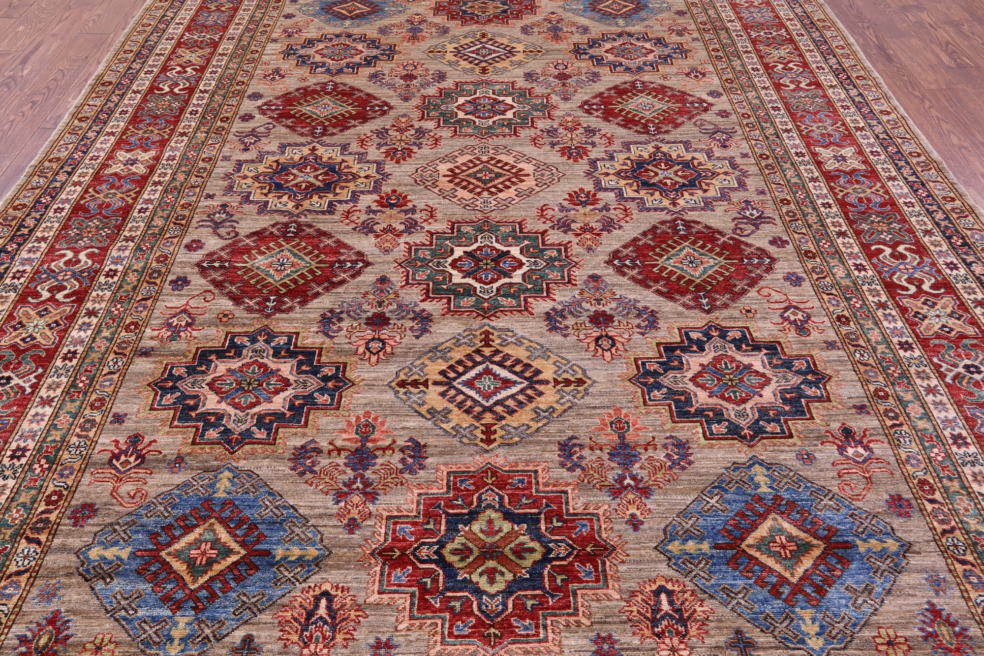 Super Kazak rugs were woven in the south of Caucasus and are very regional in their designs. Super Kazak rugs are very traditional in look and the patterns can vary from geometric shapes, tribal designs like people and animals, and symbolic medallions. They are beautifully intricate and heavy in design. These rugs come in varieties of rich, warm, jewel tones that can liven up any space.