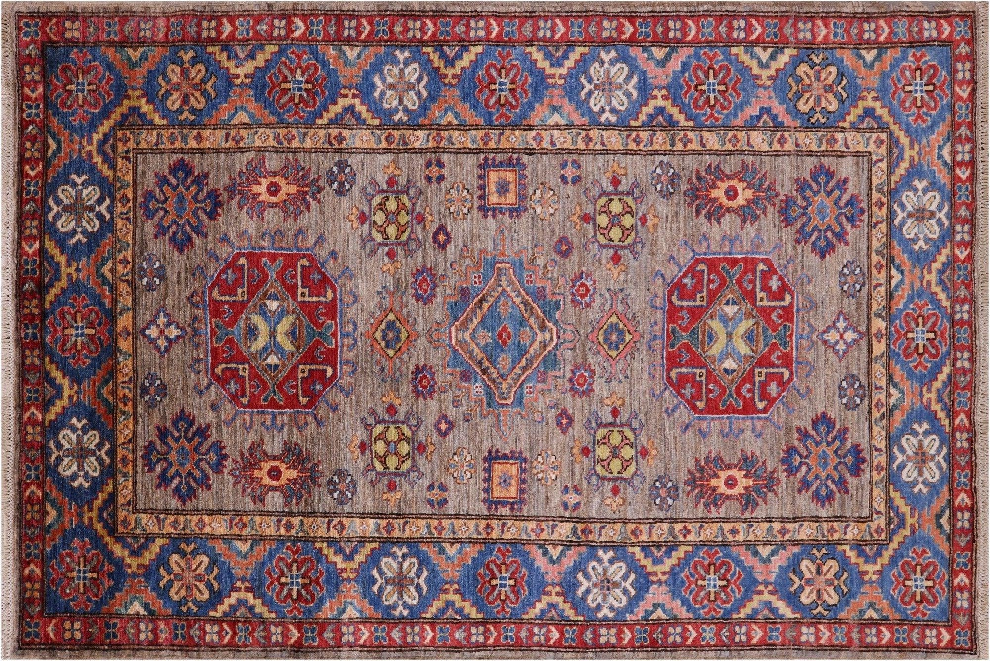 3' 10" X 5' 10" Super Kazak Hand Knotted Wool Rug - Q7507
