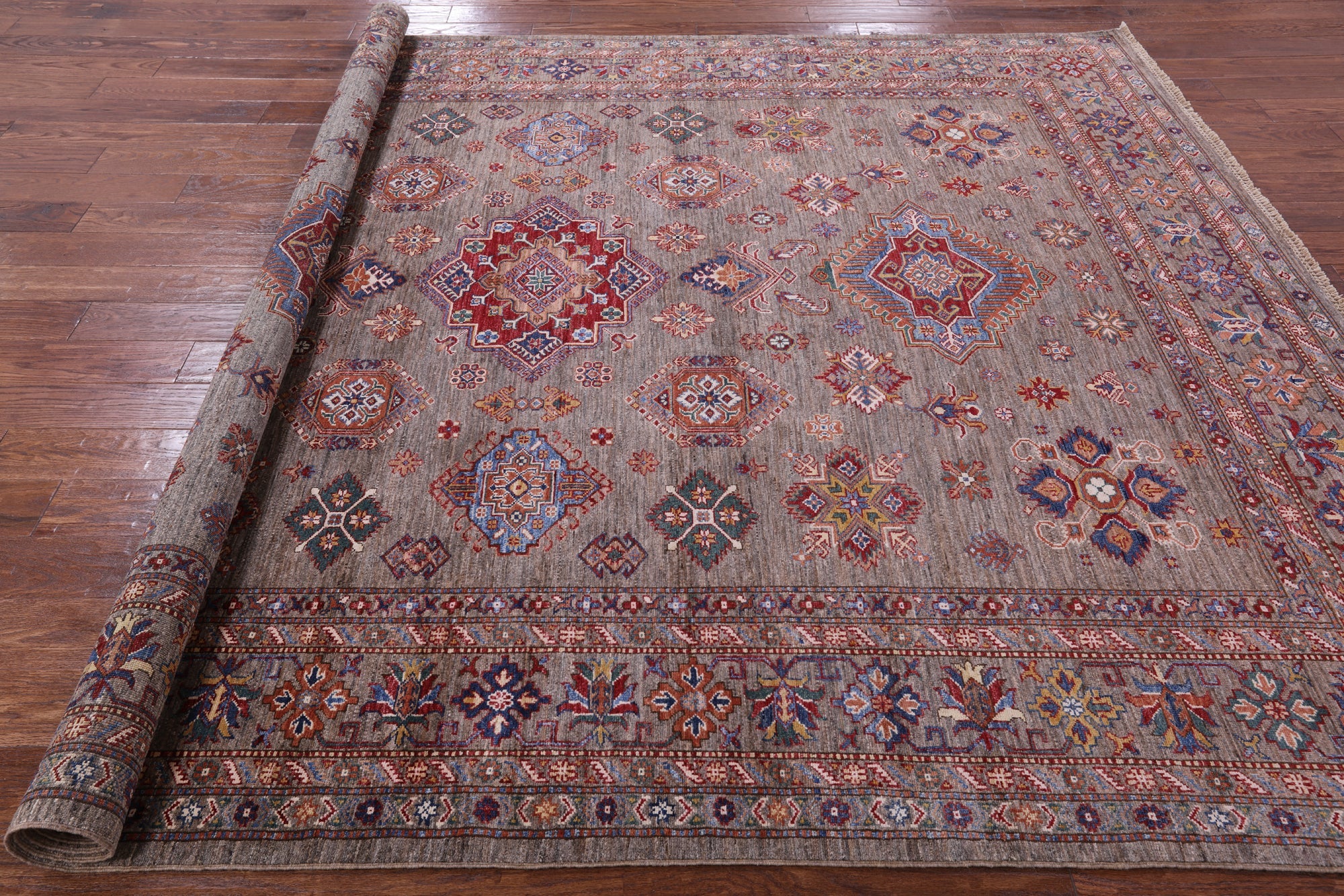 Super Kazak rugs were woven in the south of Caucasus and are very regional in their designs. Super Kazak rugs are very traditional in look and the patterns can vary from geometric shapes, tribal designs like people and animals, and symbolic medallions. They are beautifully intricate and heavy in design. These rugs come in varieties of rich, warm, jewel tones that can liven up any space.