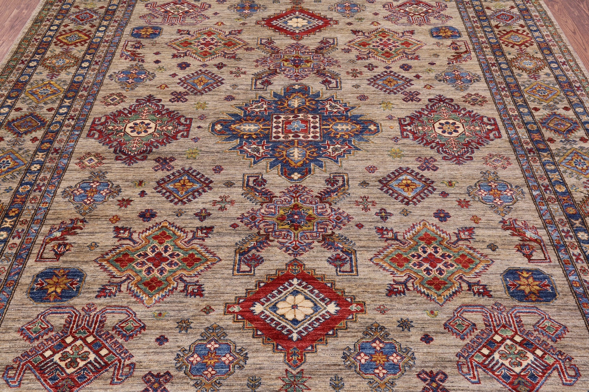 8' 3" X 9' 11" Super Kazak Handmade Wool Rug - Q9987 is backordered and will ship as soon as it is back in stock.