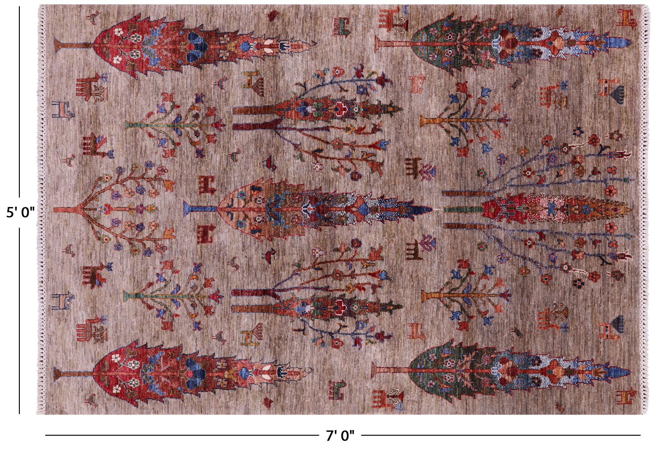 5' 0" X 7' 0" Tribal Persian Gabbeh Hand Knotted Rug - Q14343