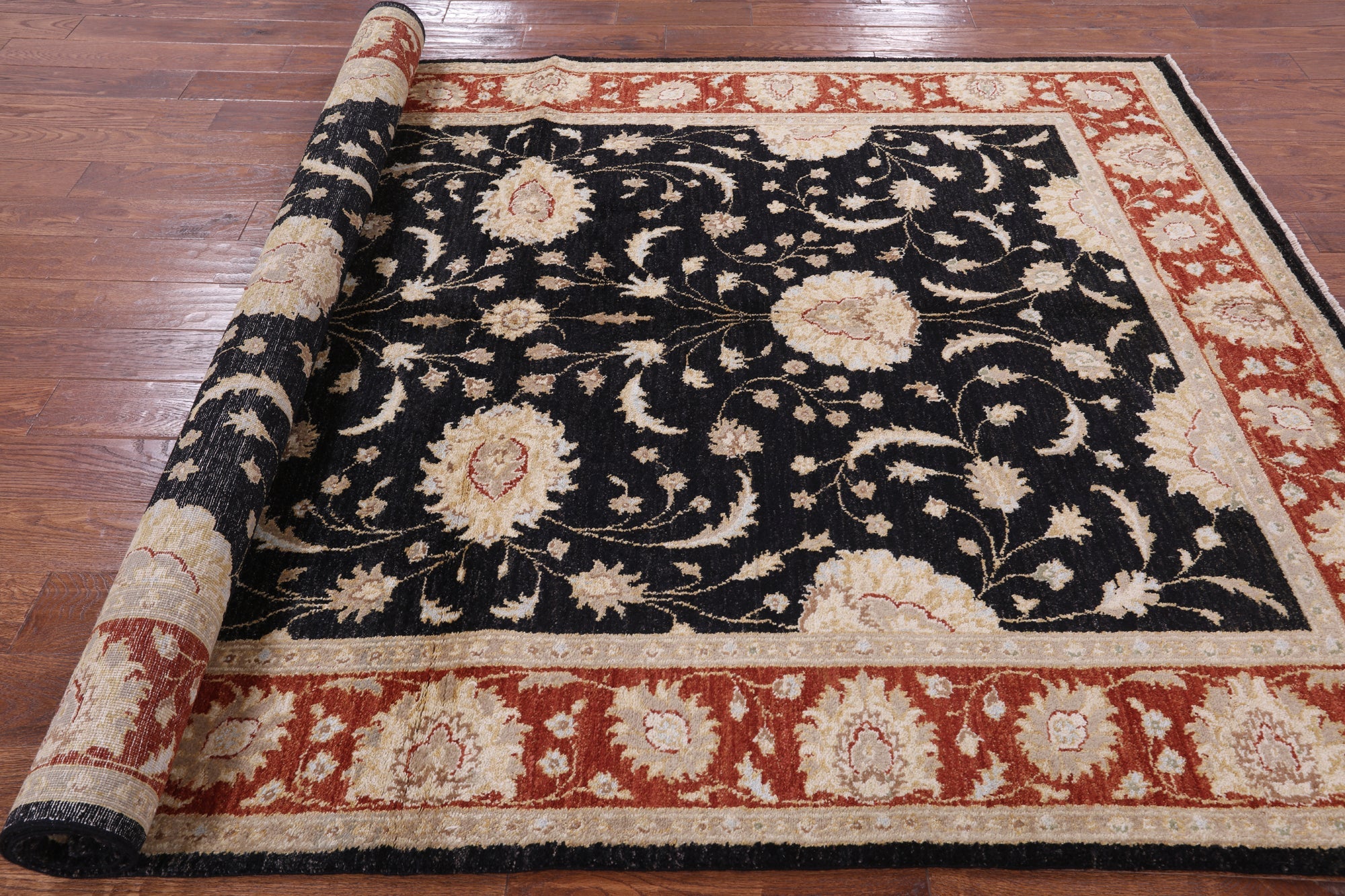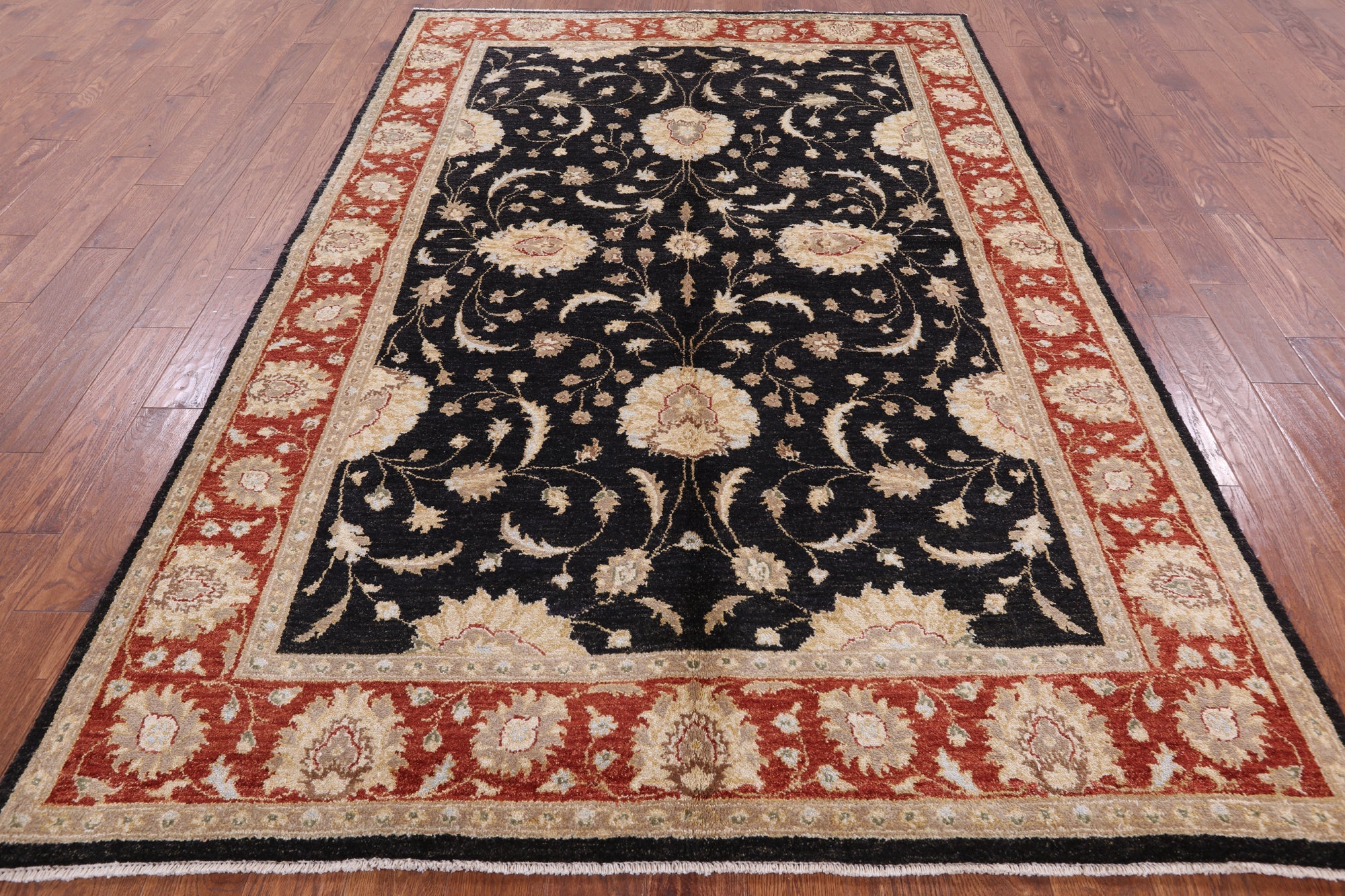 Black Chobi Peshawar Hand-Knotted Wool Rug 6' 3" X 9' 3" - W201 is backordered and will ship as soon as it is back in stock.