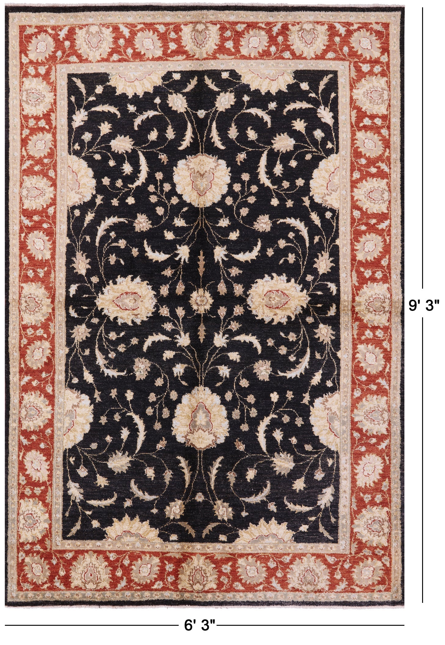 Black Chobi Peshawar Hand-Knotted Wool Rug 6' 3" X 9' 3" - W201