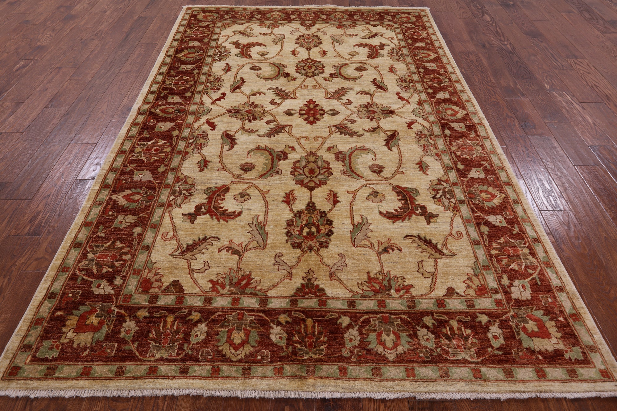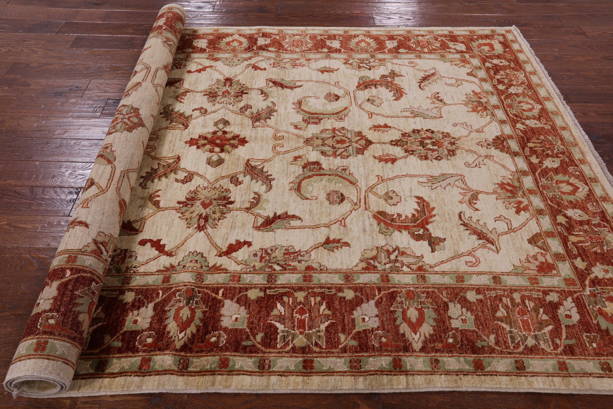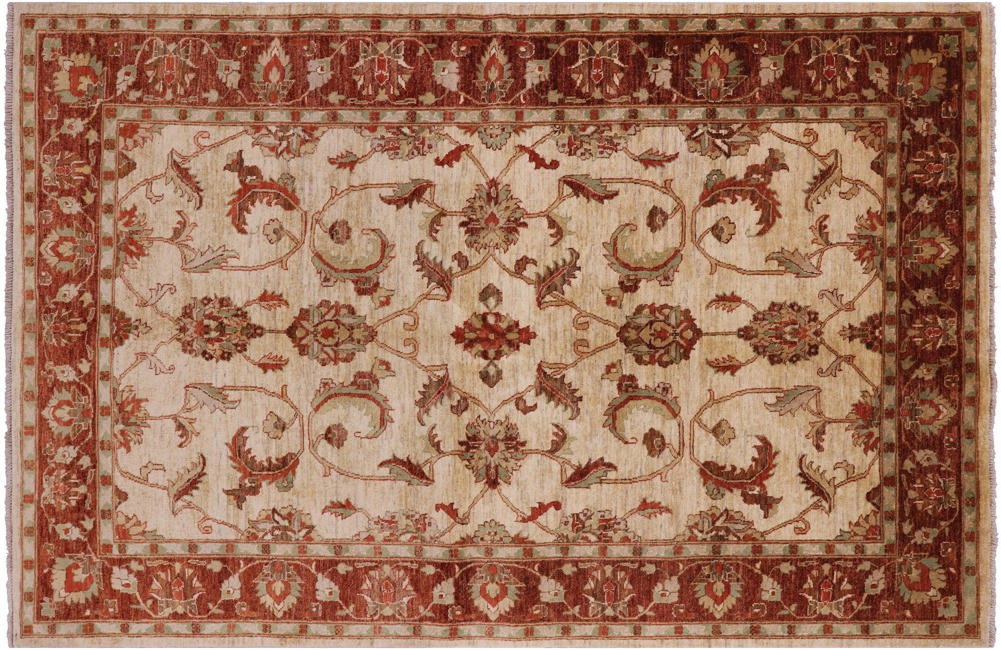 Ivory Peshawar Hand Knotted Rug 5' 10" X 9' 1" - W1441