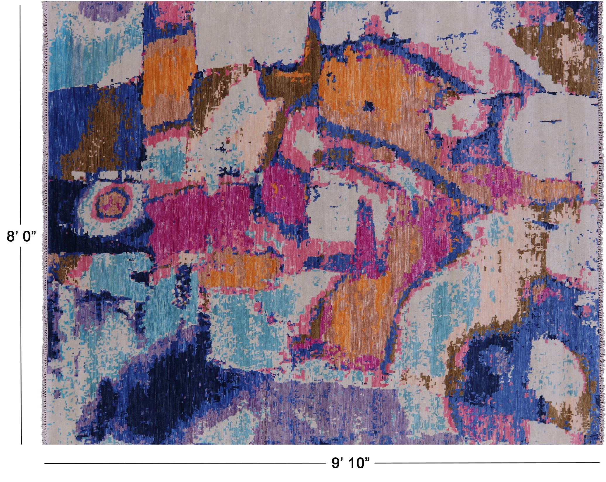 8' 0" X 9' 10" Abstract Modern Hand Knotted Rug - Q21588