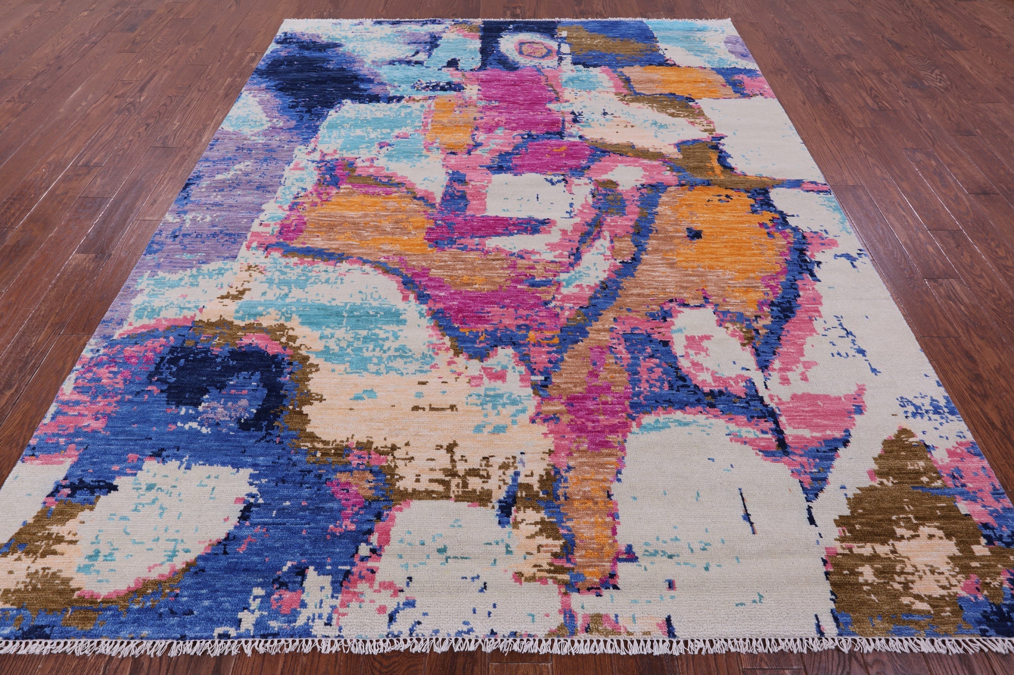 8' 0" X 9' 10" Abstract Modern Hand Knotted Rug - Q21588 is backordered and will ship as soon as it is back in stock.