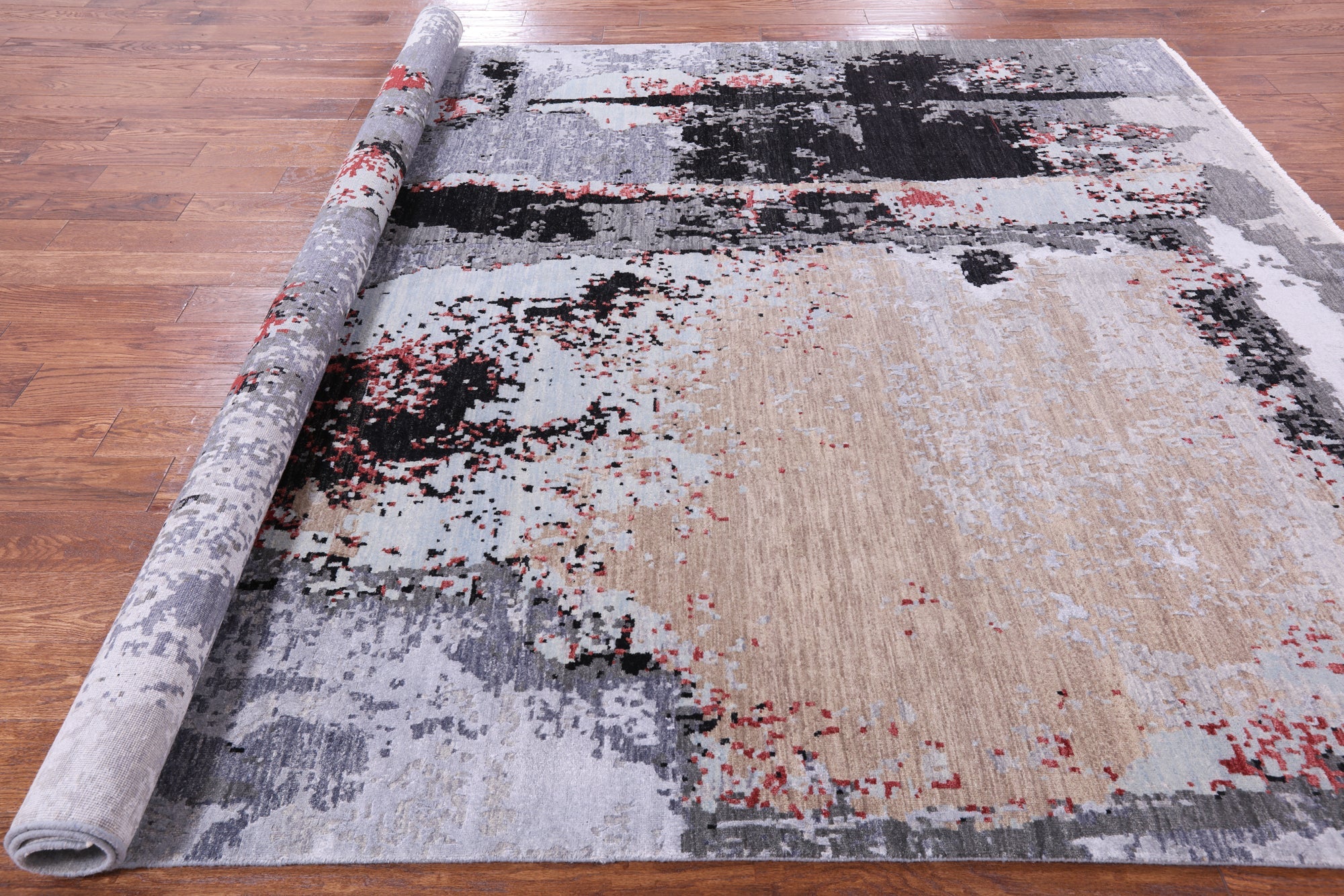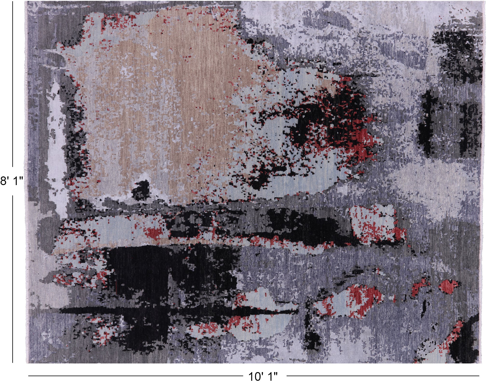 8' 1" X 10' 1" Abstract Wool & Silk Hand Knotted Rug- Q6572