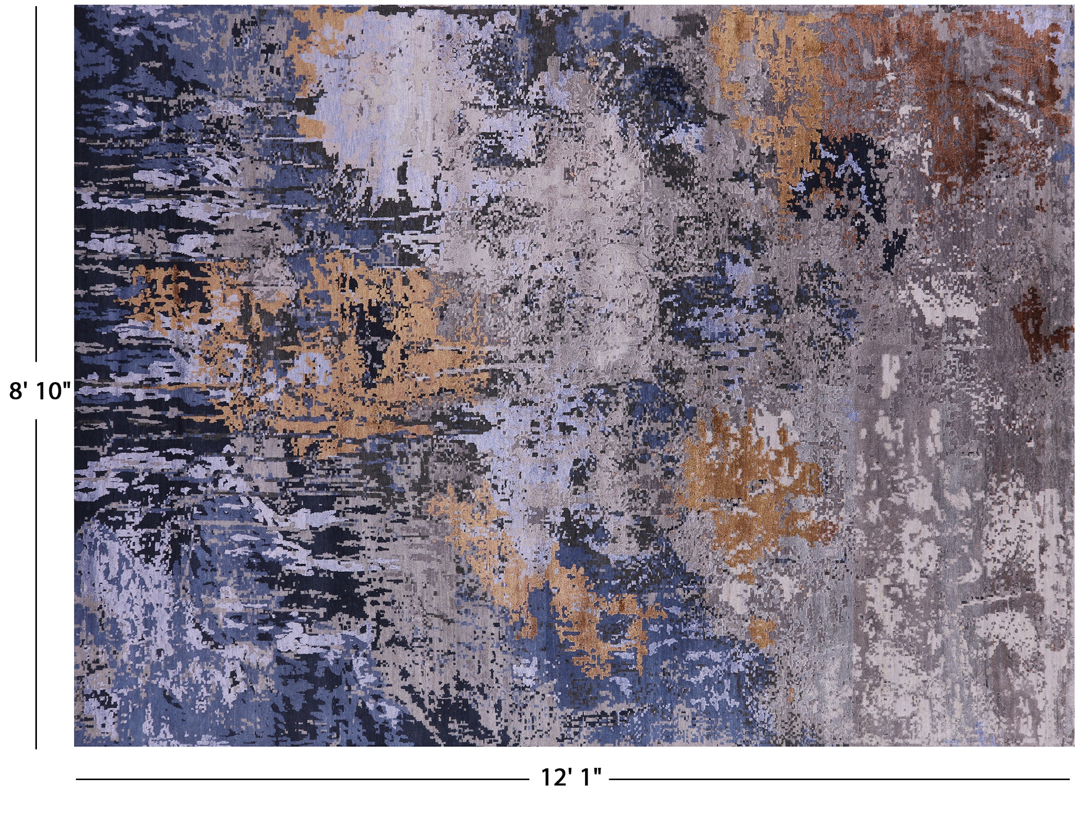 Abstract Wool & Silk Hand-Knotted Rug 8' 10" X 12' 1" - Q7079